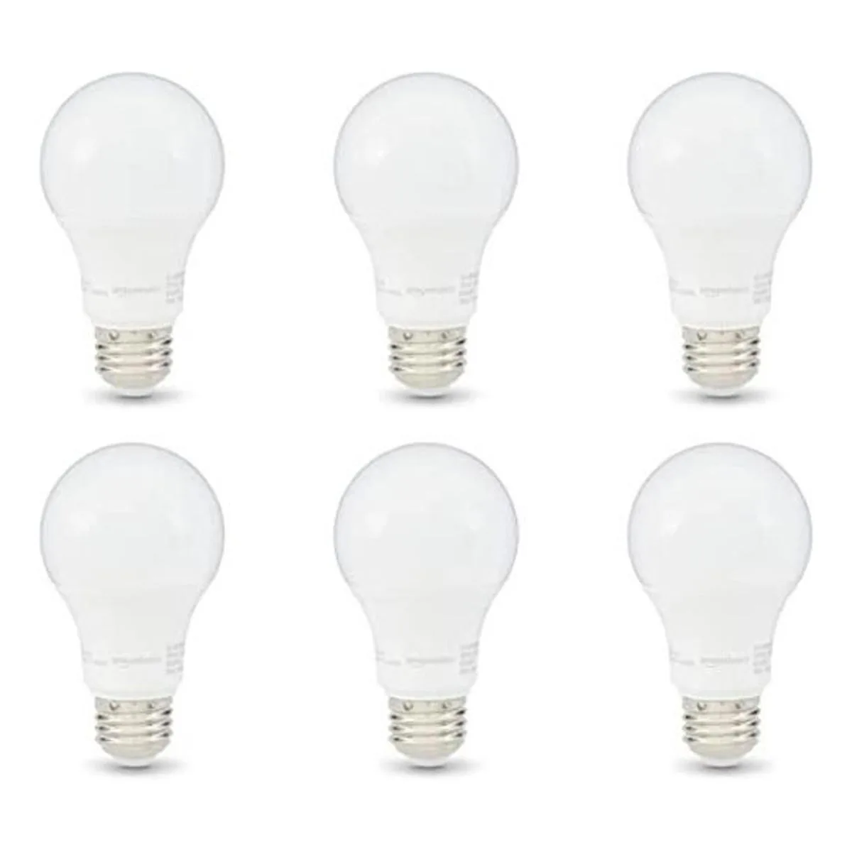 Bombilla LED A19 equivalente a 60 W, color blanco suave, regulable, vida útil de 10,000 horas, paquete de 6