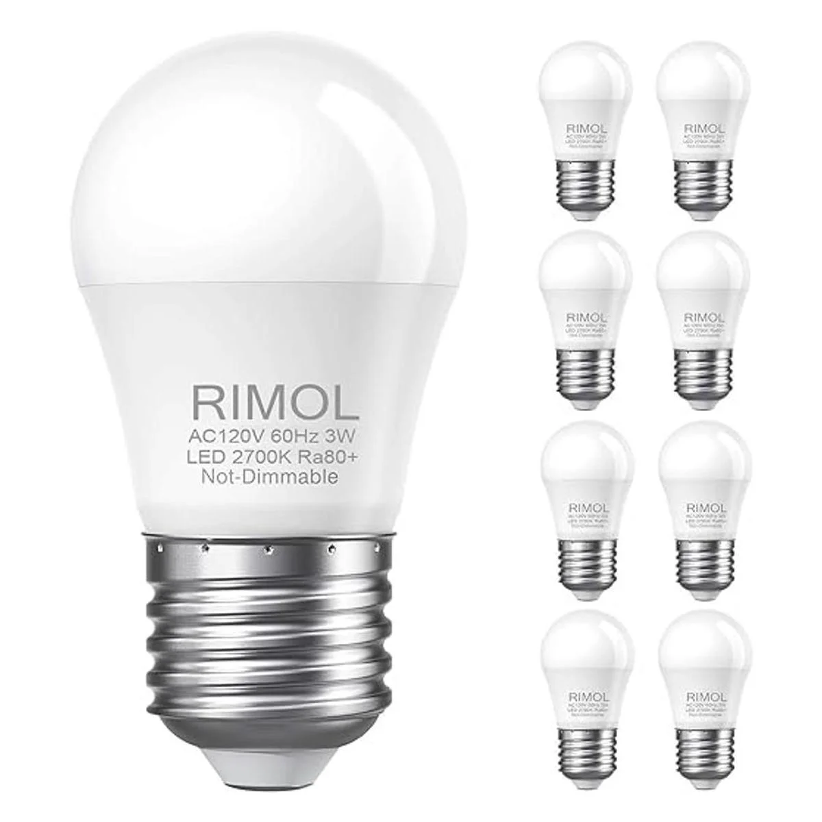 Bombilla LED de 3 W, equivalente a 25 W, bombilla LED RIMOL A15, luz blanca suave, 2700 K, bajo consumo de energía, bombilla E26 base para dormitorio 8 unidades