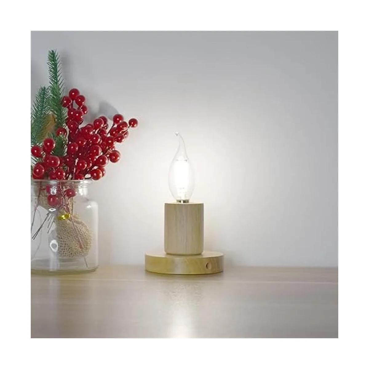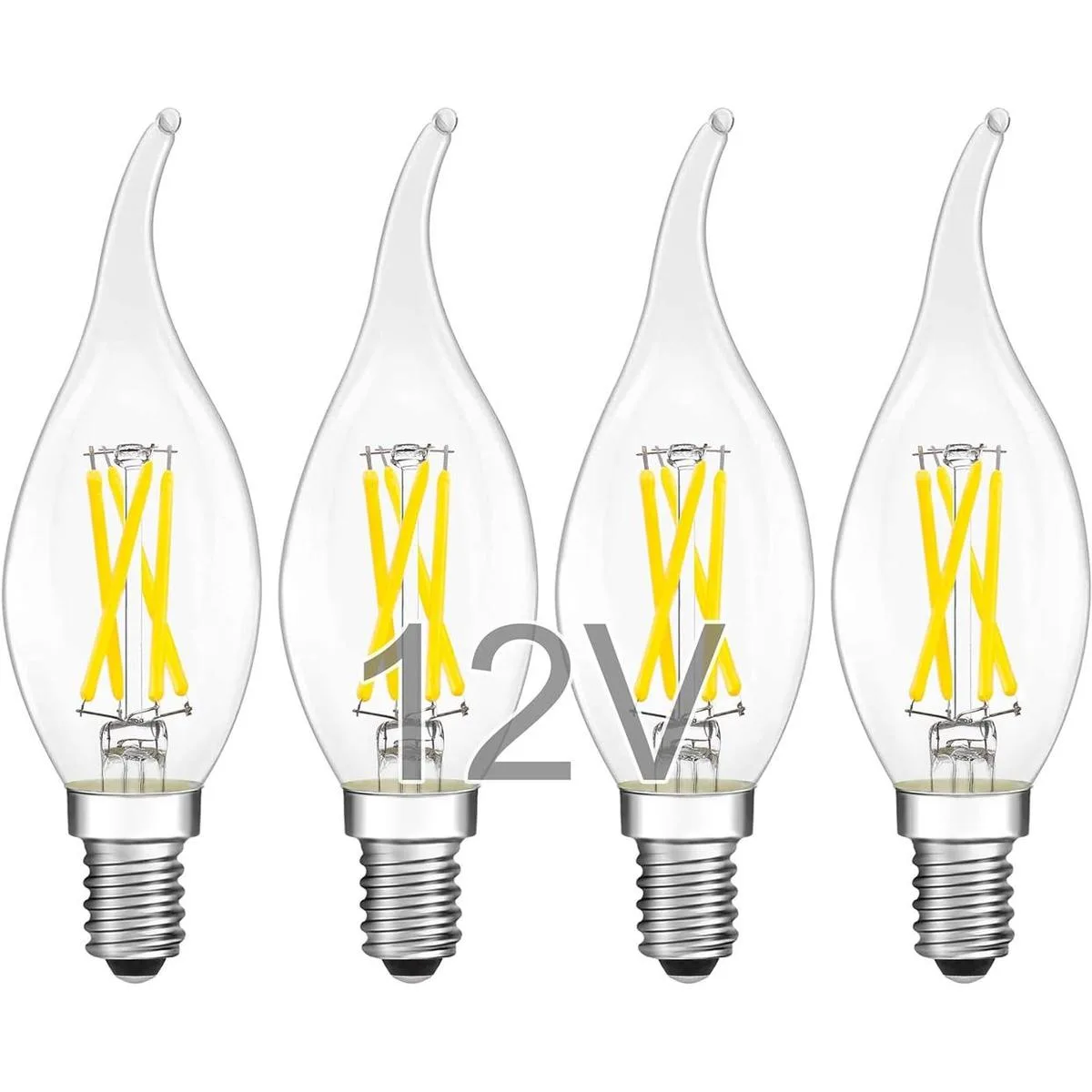 Estilo de punta de llama LED Bombilla LED E12 con base de candelabro de 12 V, diseño clásico de vidrio transparente con filamento expuesto que ofrece un aspecto blanco brillante, sin mercurio, sin parpadeo y sin rayos UV.