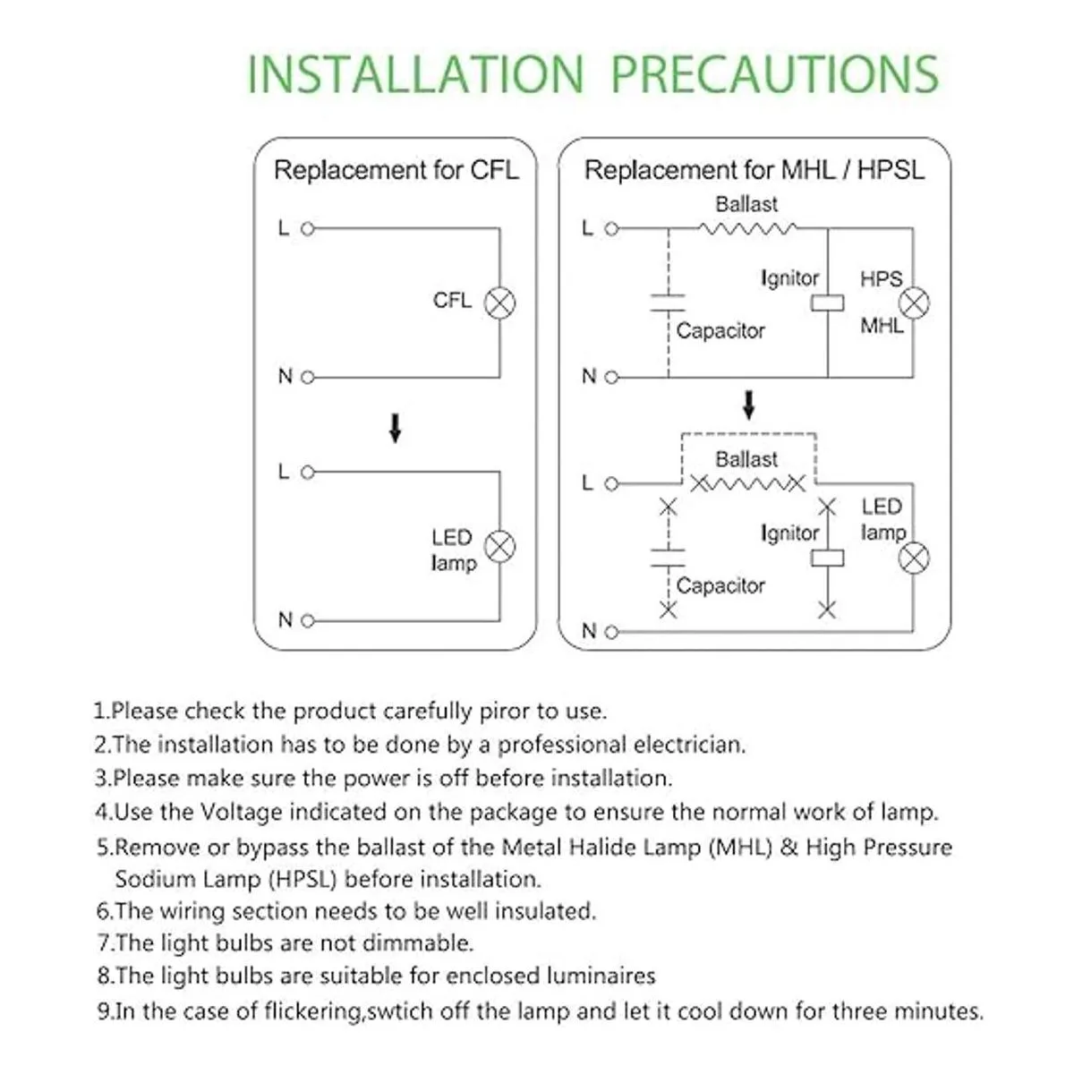 Alto rendimiento: nuestras luces de maíz utilizan la última tecnología LED de bajo consumo, 21.000 lúmenes, alto brillo, bajo consumo de energía. Se pueden utilizar en área de 100 V 305 V.