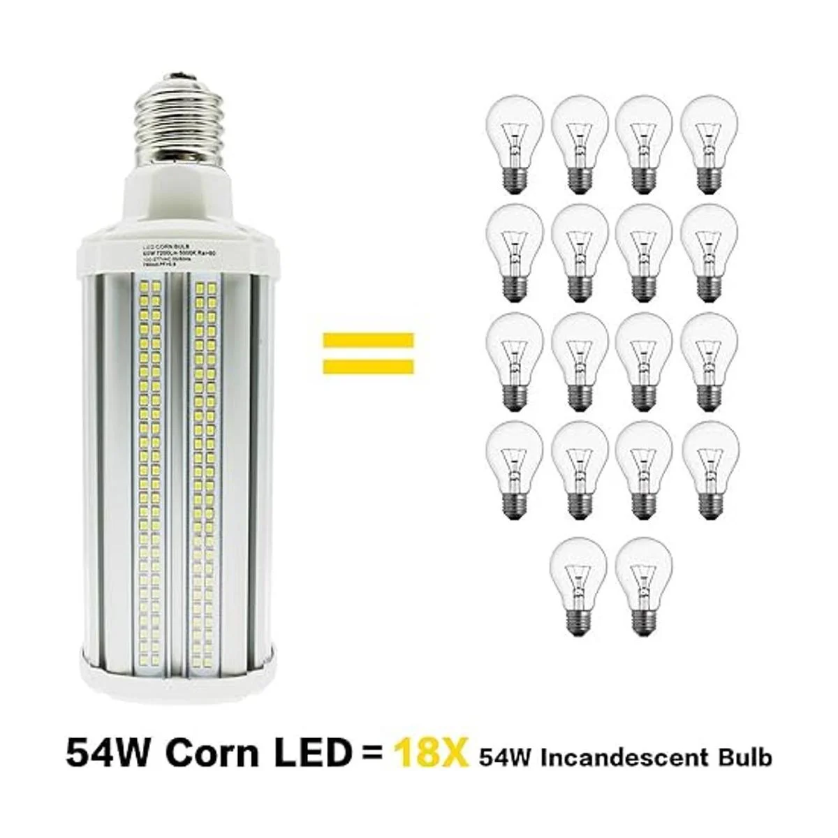 Bombilla LED de maíz de 54 W, superbrillante equivalente a 400 vatios, 7020 lúmenes, 5000 K, E40, gran área grande, luz blanca fría, para interiores, garaje, almacén, granero, estacionamiento, patio
