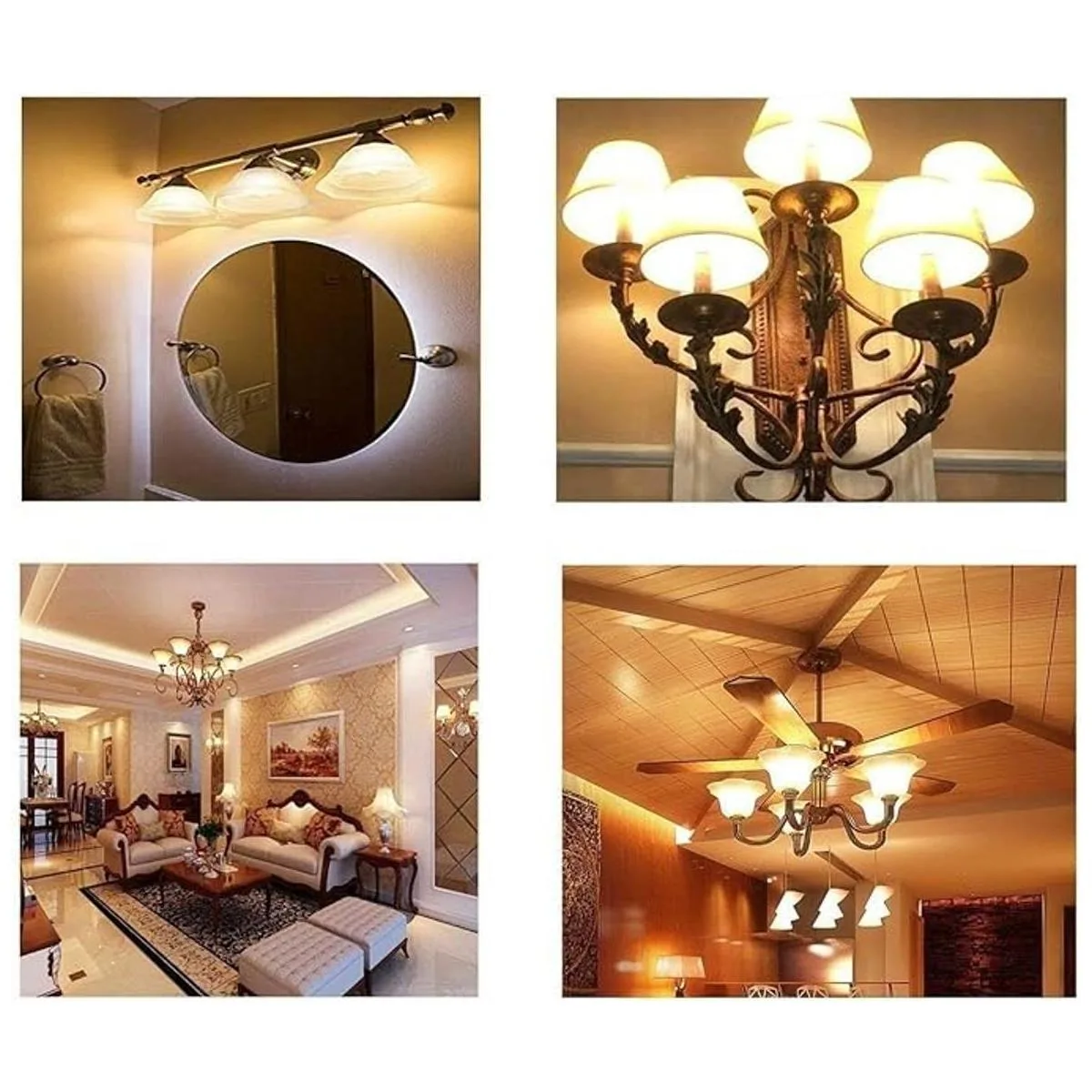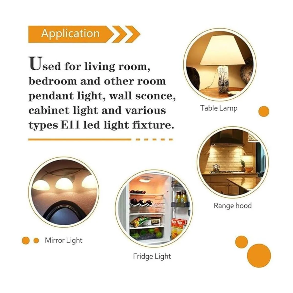 Para uso en ventiladores de techo, colgantes de voltaje de línea, candelabros, portátiles e iluminación de pista, lámparas de mesa/escritorio/pie, luces empotradas, luces de espectáculo, iluminación de gabinete, luces colgantes, apliques de pared, ampliadores, lámparas de modelado, accesorios de fotosundación, iluminación de estudio