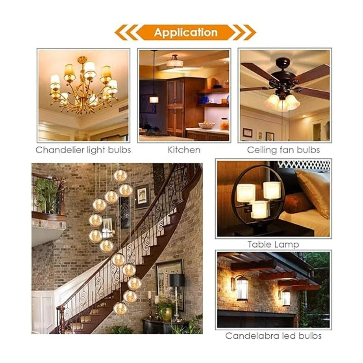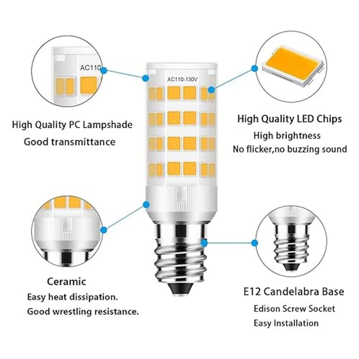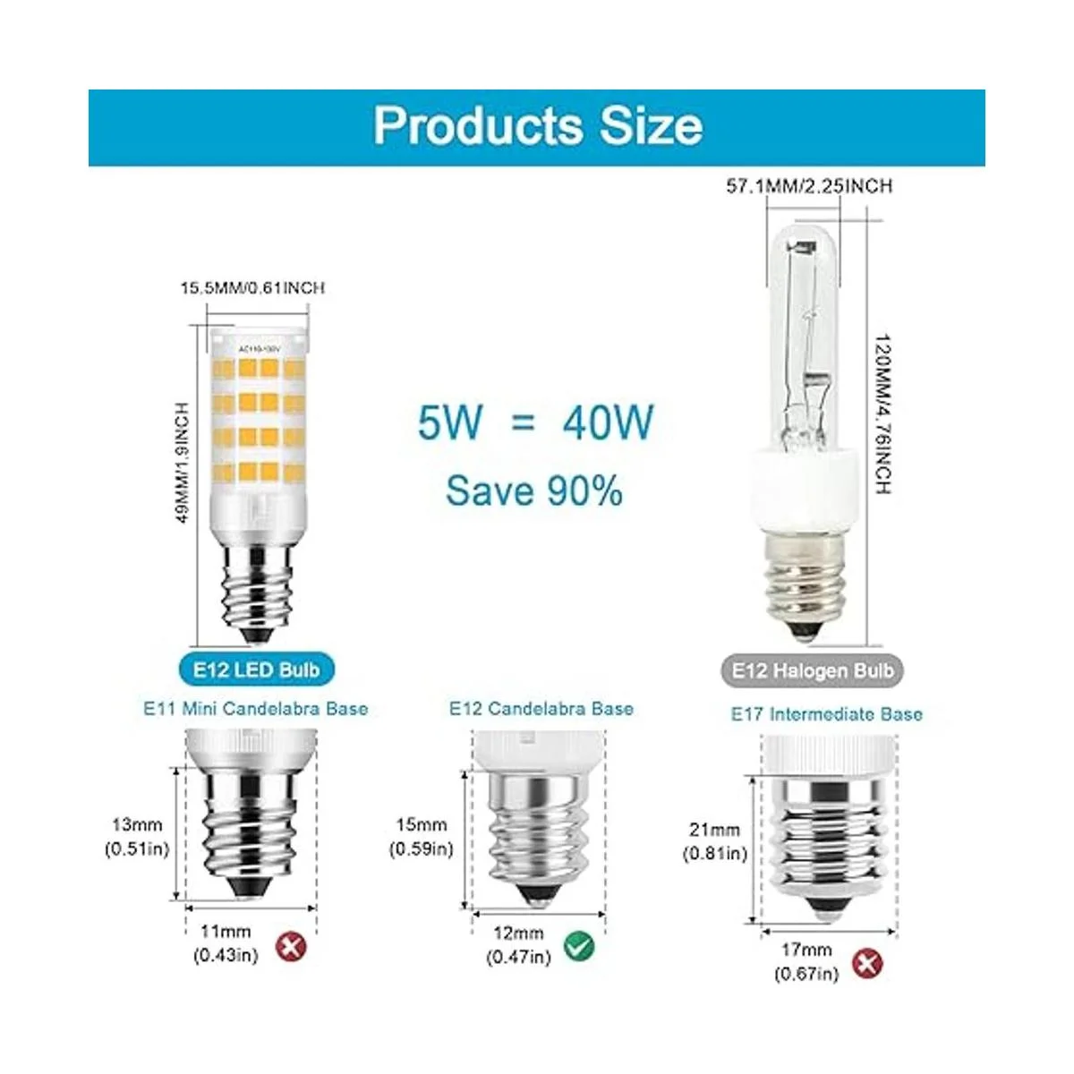 Bombilla LED E12 de 5 W equivalente a bombillas de repuesto C7 de 40 W, base de candelabro tipo B, luz blanca cálida, 2700 K, no regulable paquete de 2