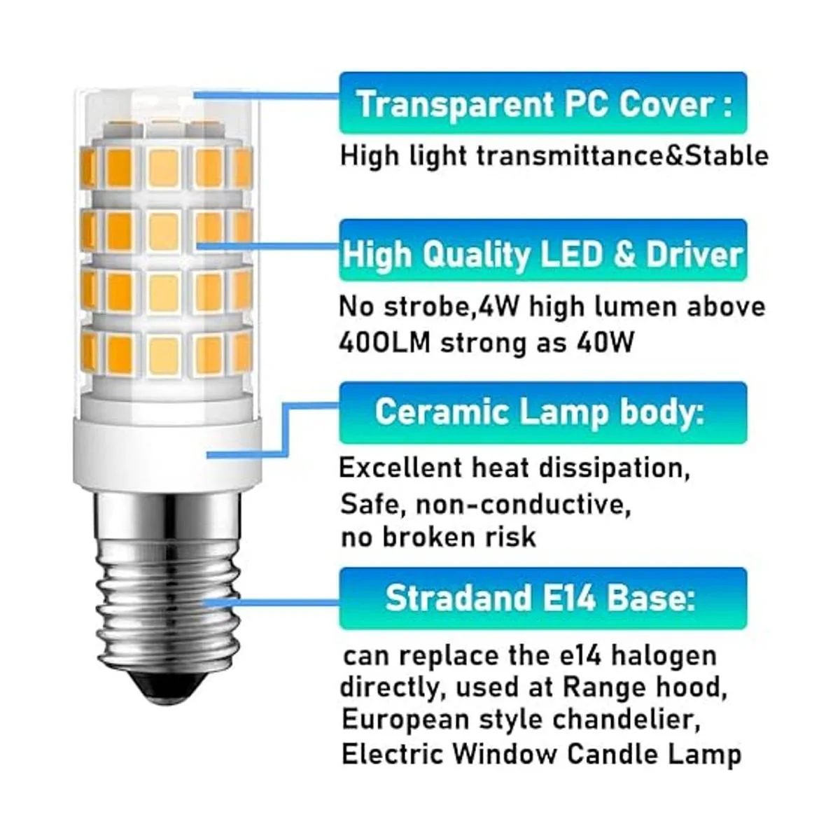 Ahorra dinero: alta eficiencia energética a muy baja generación de calor, alto brillo, ahorra factura de electricidad en comparación con las bombillas LED E14 tradicionales. Sustituye a una bombilla incandescente de 40 W por una bombilla LED de 4 W, ahorra un 90 de energía de manera efectiva.