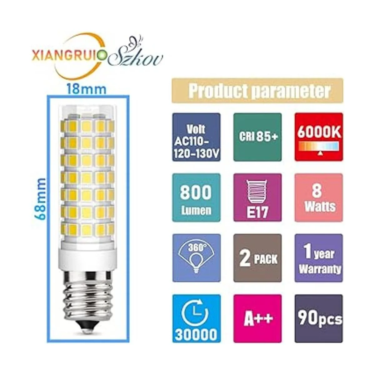 Excelente disipación de calor: cubierta de material de policarbonato de alta calidad y base de material de cerámica que muestra alta transmisión de luz, libera el calor rápidamente, excelente en radiación de calor, más seguro y más duradero. Voltaje de entrada: 110 V/120 V/130 V; Tipo de base: S11 T8 T7 E17 base intermedia. Dimensiones: 0.8 in de diámetro, 2.6 in de longitud. Carcasa de cerámica diseñada para mejorar una mejor capacidad de disipación. El calor garantiza una vida útil más larga. hasta 50.000 horas