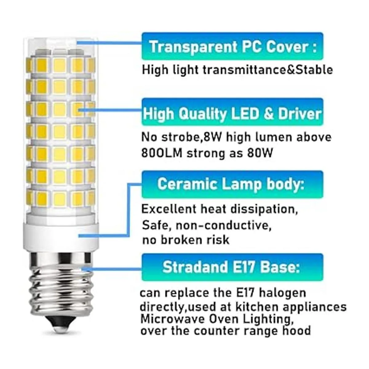 Esta luz LED E17 para horno de microondas se puede usar en horno microondas, electrodomésticos, campana de rango libre, luz de estufa, luces de refrigerador, lámparas de araña. hogar, oficina, restaurantes, tiendas, escuelas, etc. Bombillas de paisaje/universal