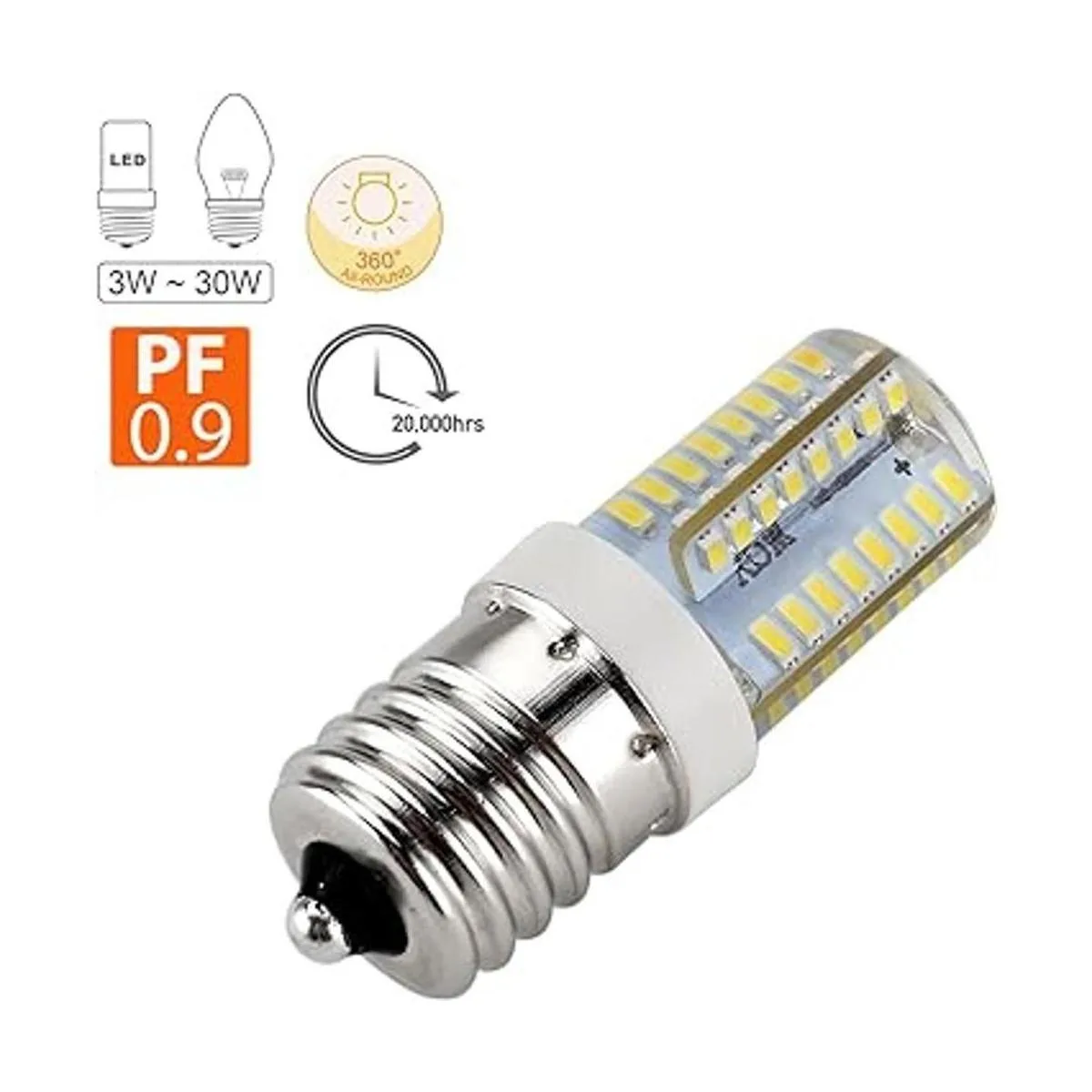 Repuesto de iluminación de aparatos de 25 W: la bombilla LED E17 de 3 W proporciona la misma cantidad de brillo que la bombilla halógena normal de 25 W y ahorra más del 90 de energía. Vida media de la bombilla: 20.000 horas. 1 año de garantía.