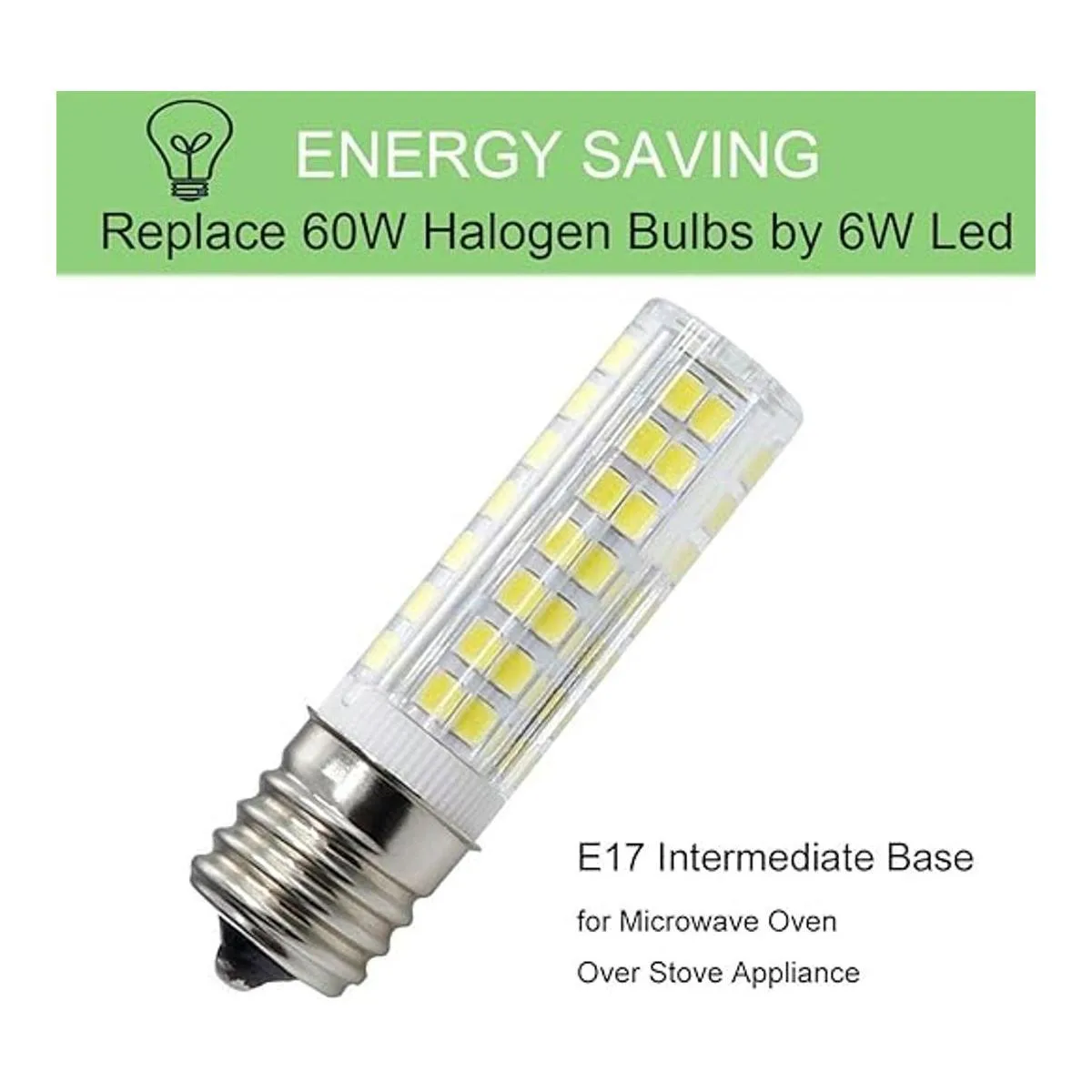 Bombilla LED E17 para horno microondas sobre estufa, 6 W, color blanco equivalente a bombillas halógenas de 60 W, 110120 V, base intermedia, regulable, paquete de 2 unidades