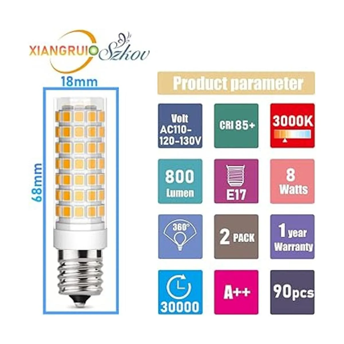 Números de pieza de repuesto: mucho más grandes que las bombillas tradicionales S11/T8/T7/E17. 90 ledes SMD 2835 de alto brillo como fuente de luz, 800 lm, ángulo de haz omnidireccional de 360 grados; repuesto 8206232A 8206232 1890433 AP4512653, WB36X10003, WB25X10030, 6912W1Z004B.
