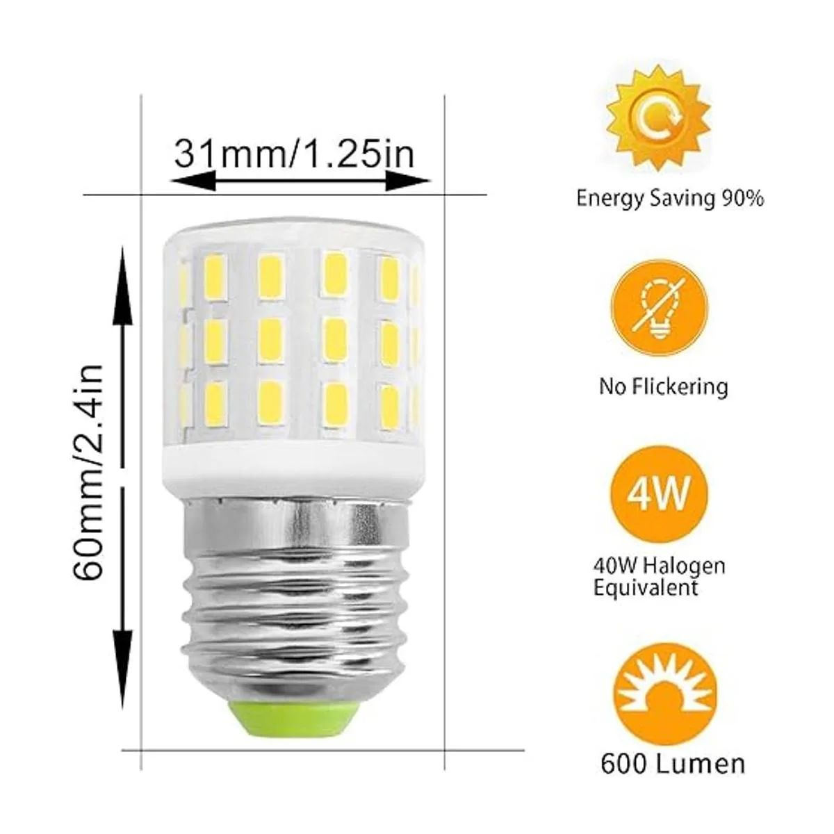 Bombilla LED E26 de 40 W, equivalente a halógeno, CA 100265 V, lámpara de electrodoméstico para refrigerador, luz diurna, 6000 K, 600 Lm, 4 W, T10, base de tornillo medio, bombillas de maíz no regulables, paquete de 1