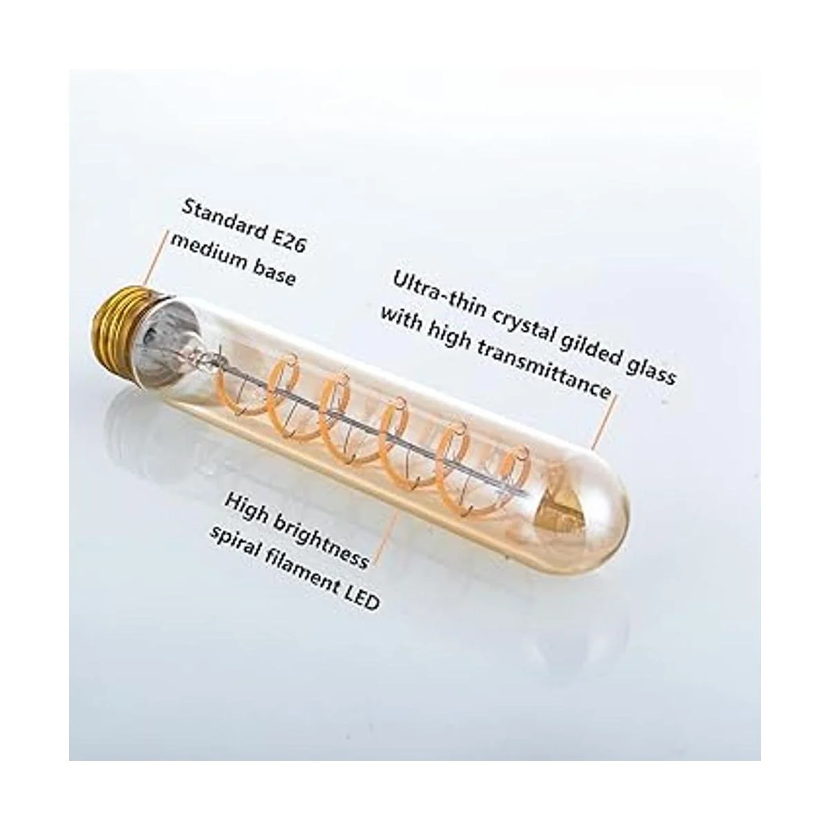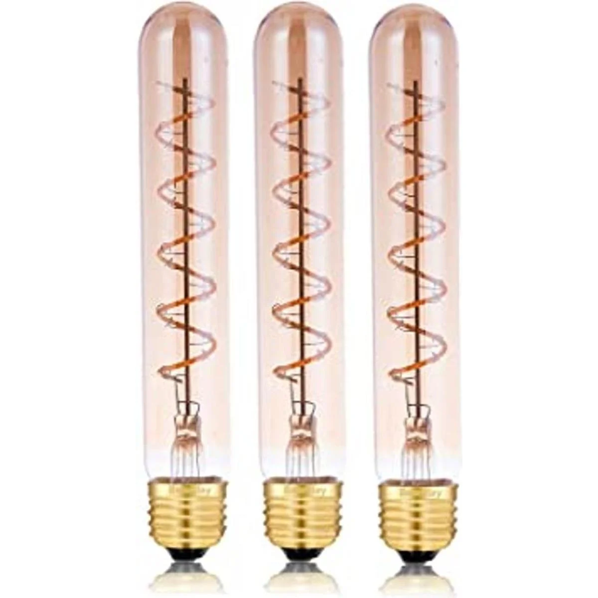 Bombilla LED Eison regulable de 4 W, bombilla LED larga vintage T10, equivalente a 40 W, blanco cálido, 2700 K, base media E26, color ámbar de 7.3 pulgadas de largo, paquete de 3