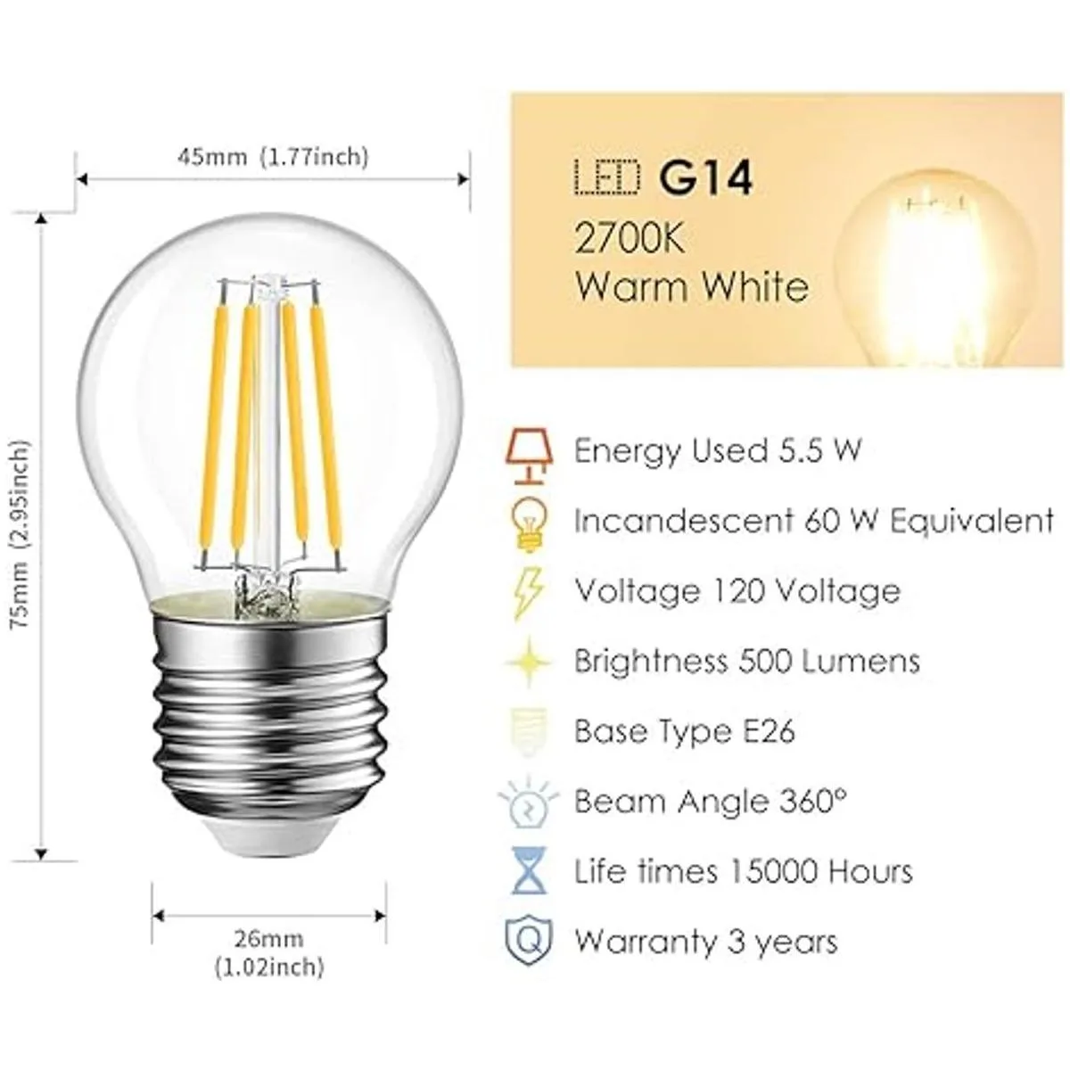 Bombilla LED G14, 5,5 W equivalente a 60 W, LVWIT regulable 2700 K, base de rosca E26, bombilla Edison decorativa G45, lista UL 6 unidades