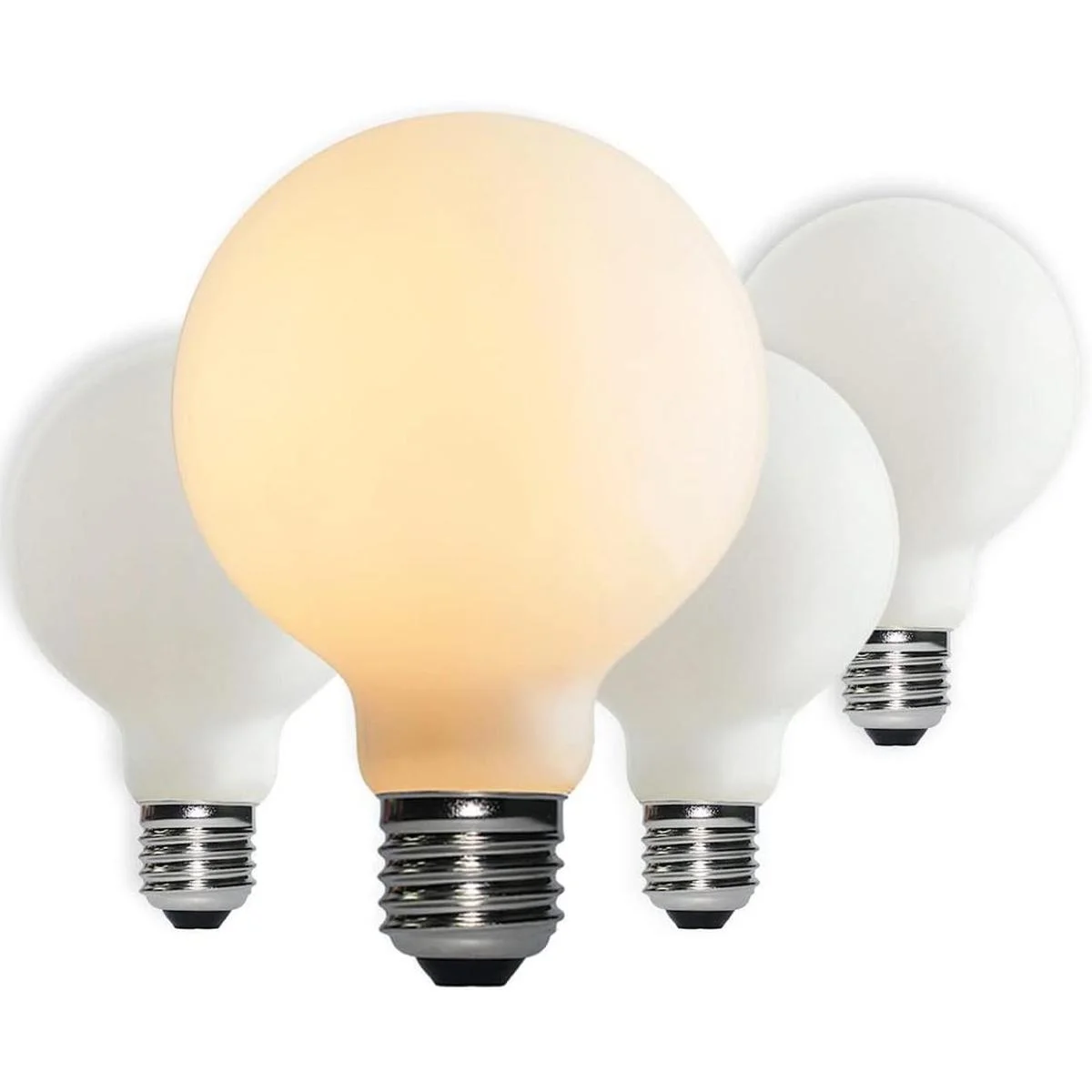 Bombilla LED G25G80 regulable sin parpadeo, blanco mate, 6 W, 2700 K, CRI95 420 LM, bombilla Edison equivalente a 40 W paquete de 4 unidades blanco
