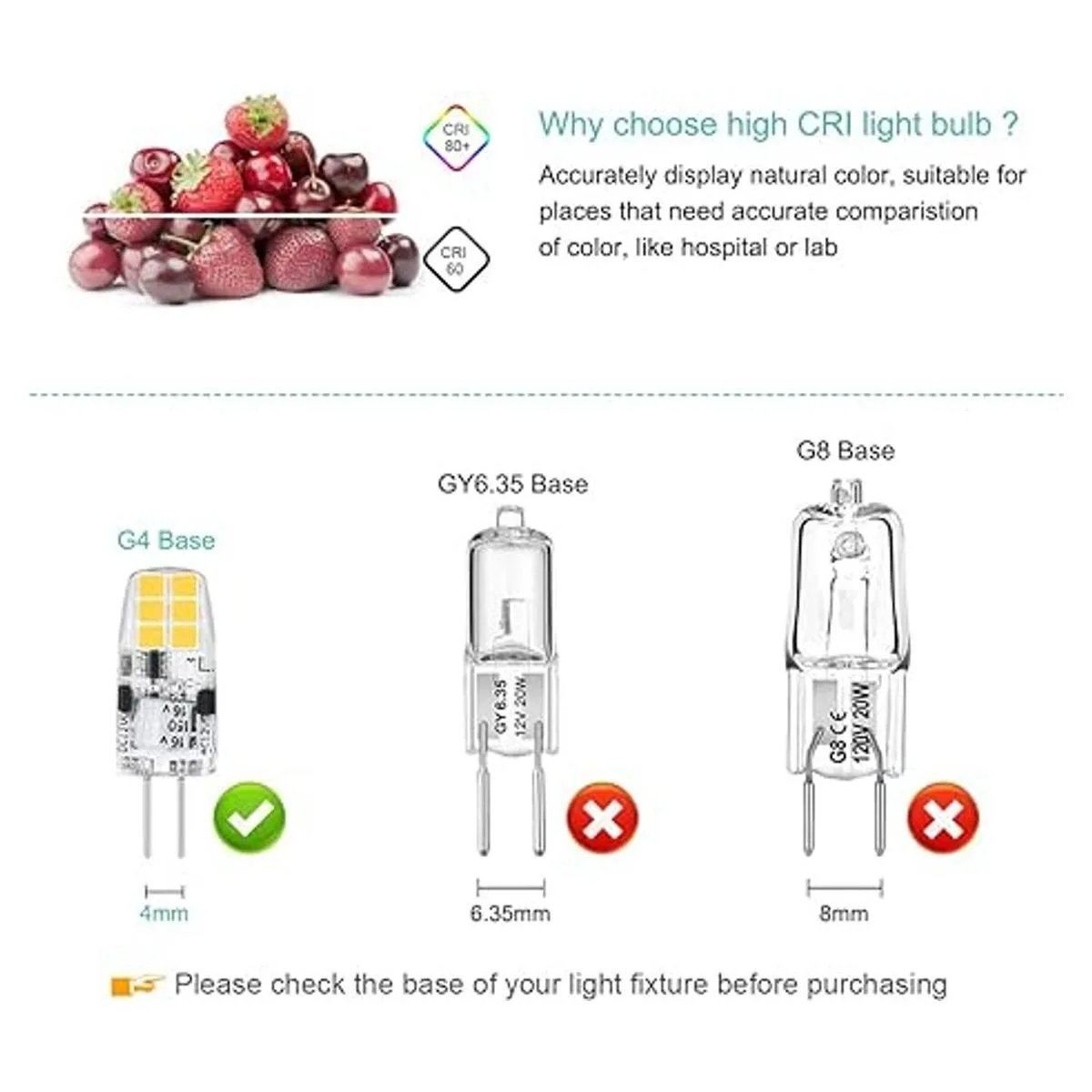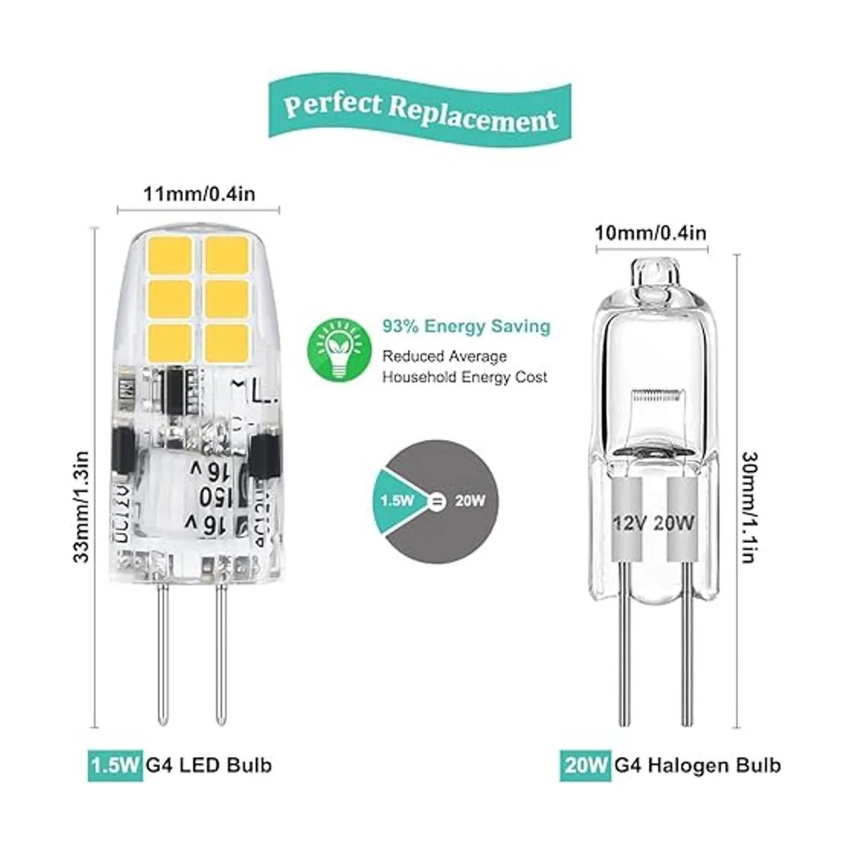 Ahorro de energía: ahorra hasta un 93 en tu factura de energía reemplazando la bombilla halógena G4 de 20 W con bombilla LED G4 de 1,5 W.