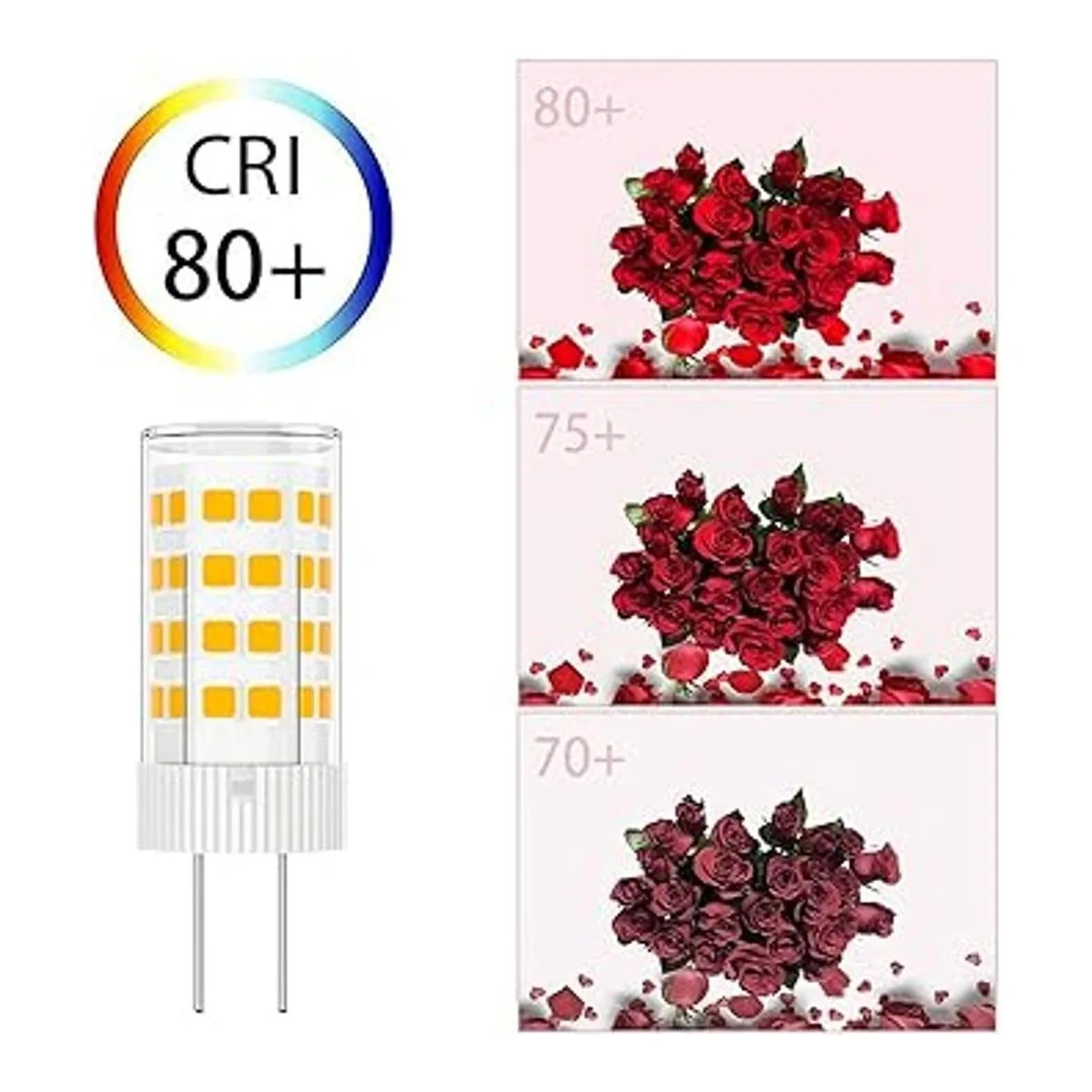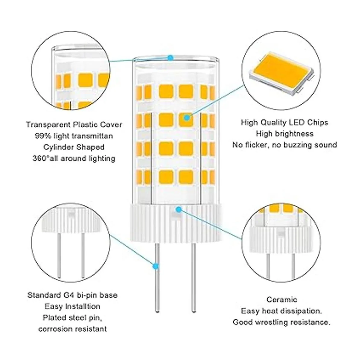 Ahorro de energía y alta salida: estas bombillas LED G4 son de solo 5 W, pero pueden alcanzar hasta 450 lúmenes de brillo, equivalente a una bombilla halógena de 40 W, ahorra hasta un 90 en tu factura de energía.