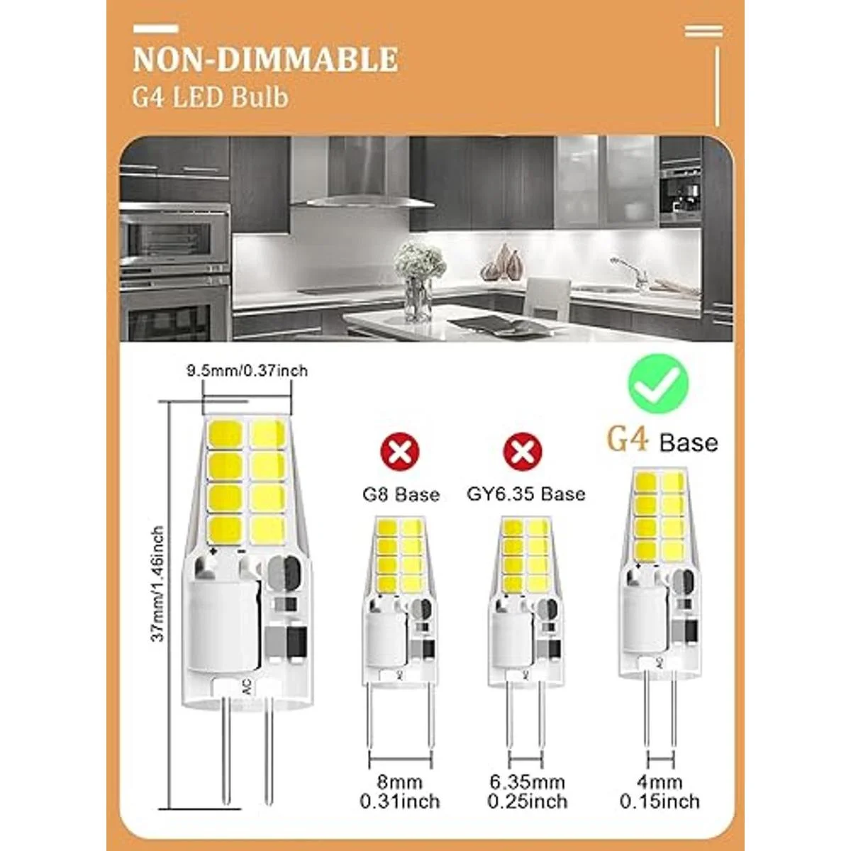 Ahorro de energía y alta salida: estas bombillas LED G4 son de solo 3 vatios, pero pueden alcanzar hasta 270 lúmenes de brillo, equivalente a una bombilla halógena de 20 a 25 W, ahorra un 90 en la factura de energía, gran reemplazo de bombillas halógenas G4 normales.