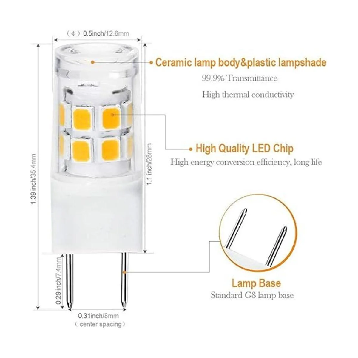 Bombilla LED G8 de 3 W, WB25X10019, bombillas halógenas de 20 W, repuesto para horno de microondas GE T4, base bipasador, 120 V, blanco cálido, 3000 K, paquete de 2