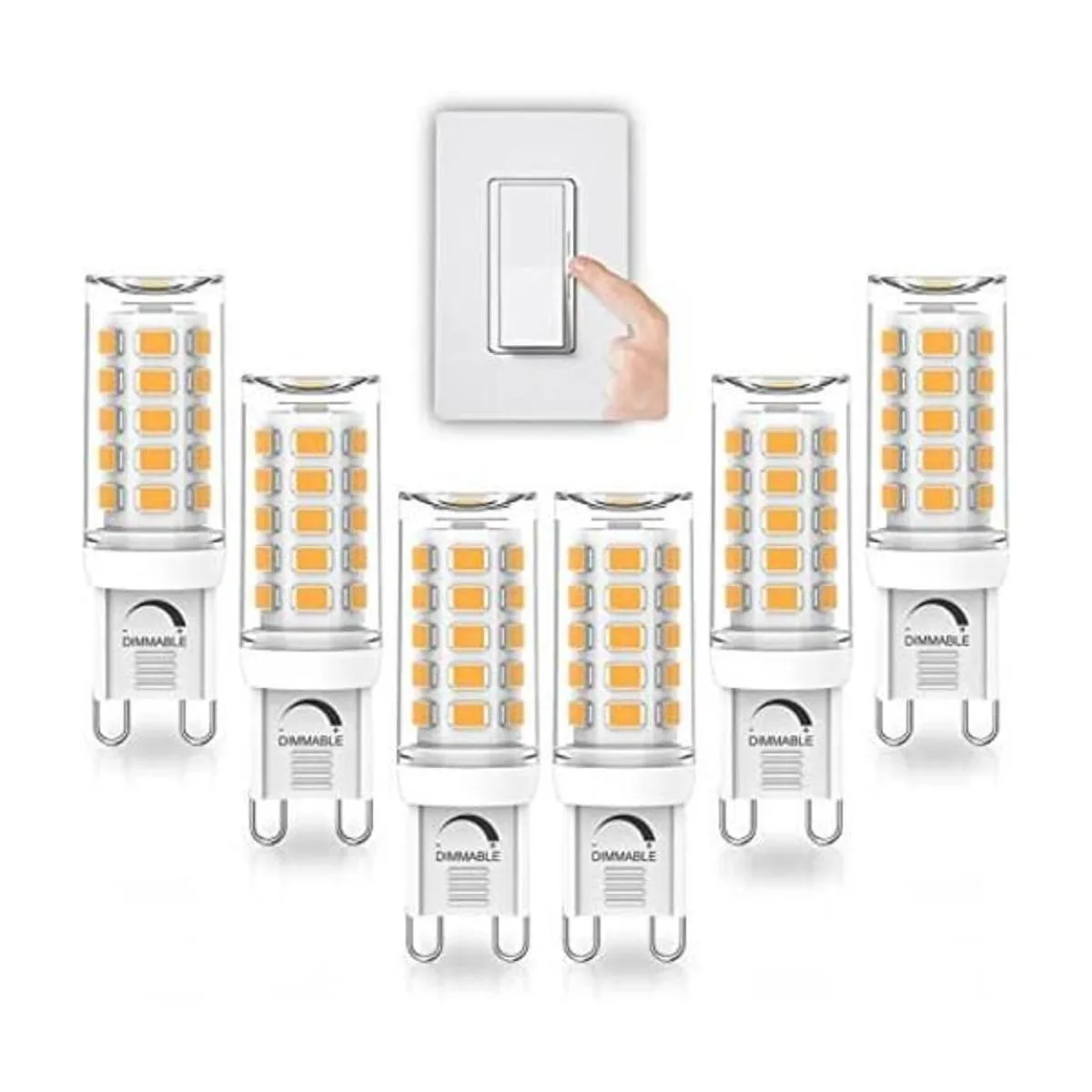 Bombilla LED G9 regulable, 4 W, equivalente a halógeno de 40 W, blanco cálido de 3000 K, CA de 120 V G9 Bi Pin, 380 LM, sin parpadeo, ángulo de haz de 360, paquete de 6 Yuiip