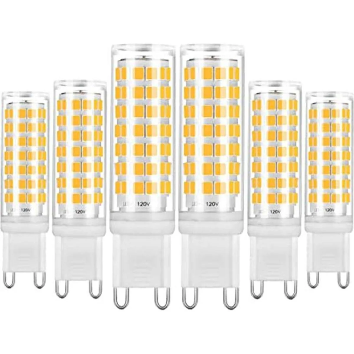 Bombilla LED G9 regulable, 6 W, blanco cálido, 3000 K, G9, base bipin CA, 120 V, 50 W, 60 W, equivalente a lámpara halógena para candelabro, iluminación de ventilador de techo, paquete de 6 YUIIP