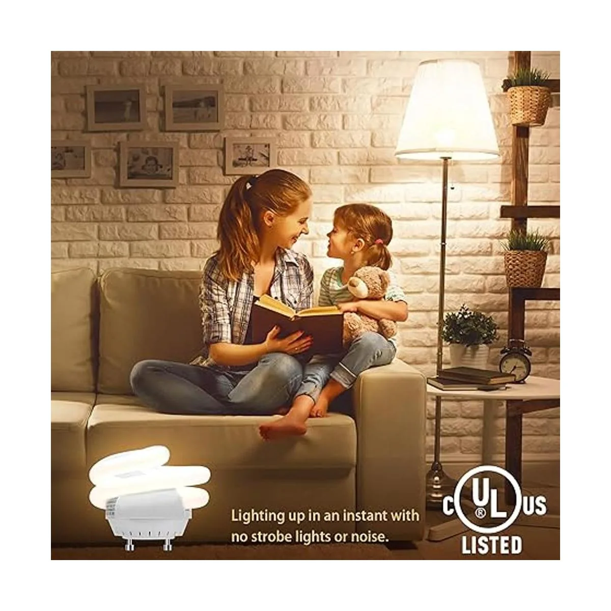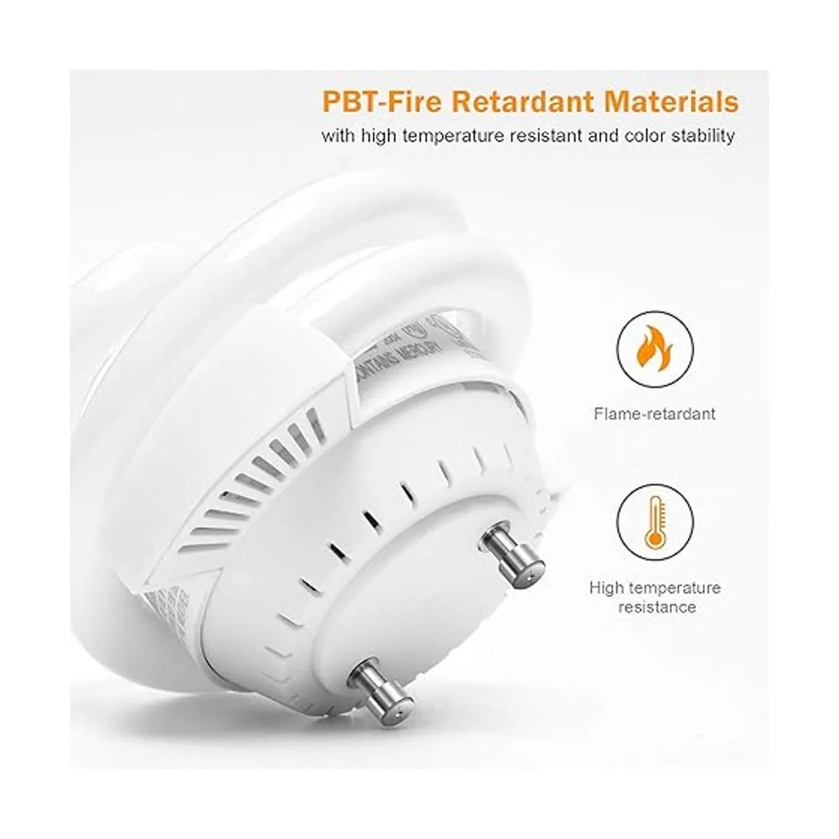 Producto UL: las bombillas JACKYLED GU24 CFL están listadas por UL. Están hechos de materiales ignífugos de alta calidad PBT con resistencia a altas temperaturas y estabilidad del color, se iluminan en un instante sin luces estroboscópicas ni ruido.