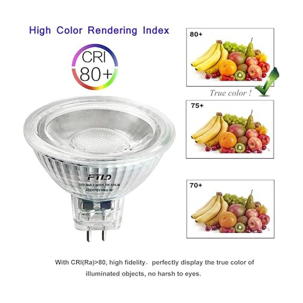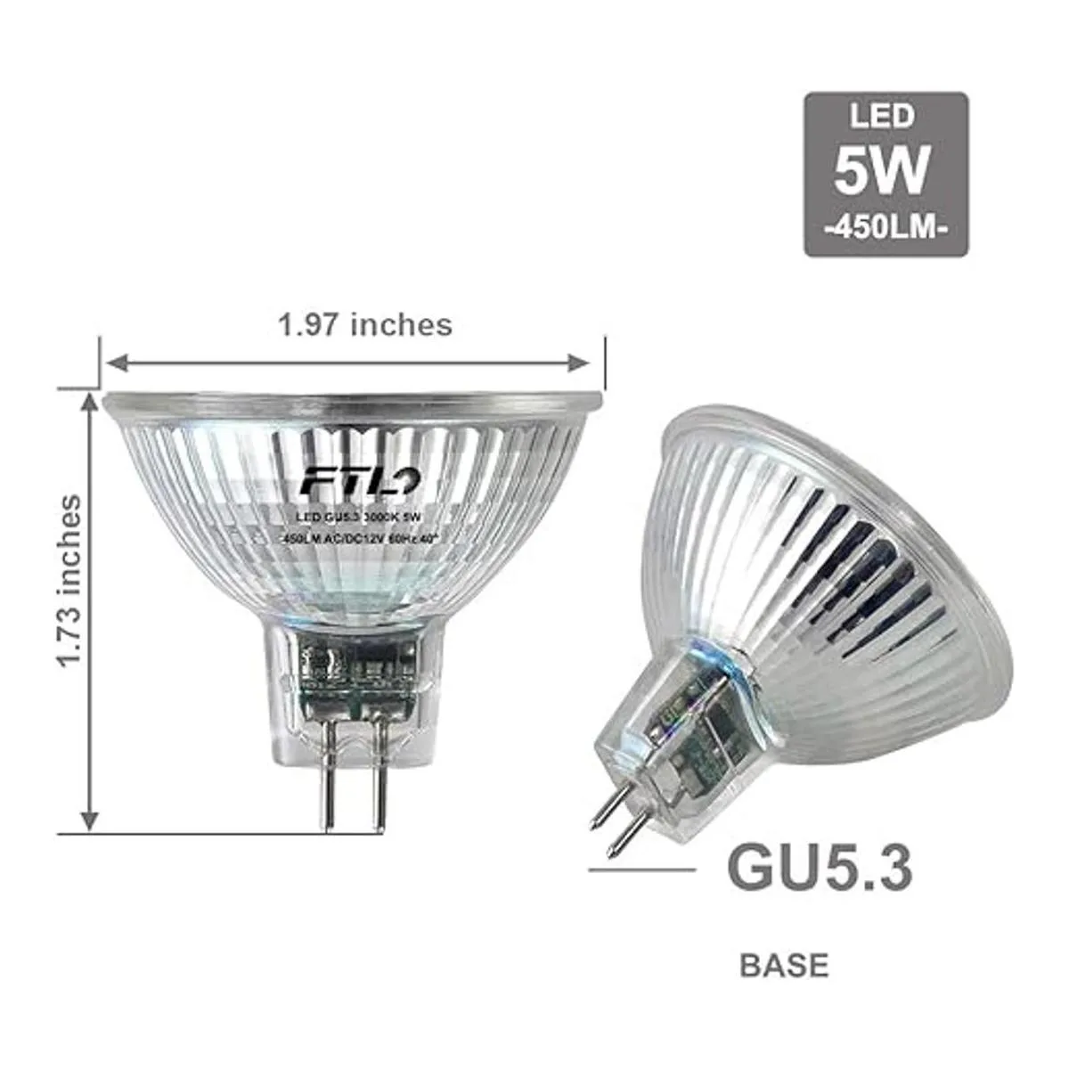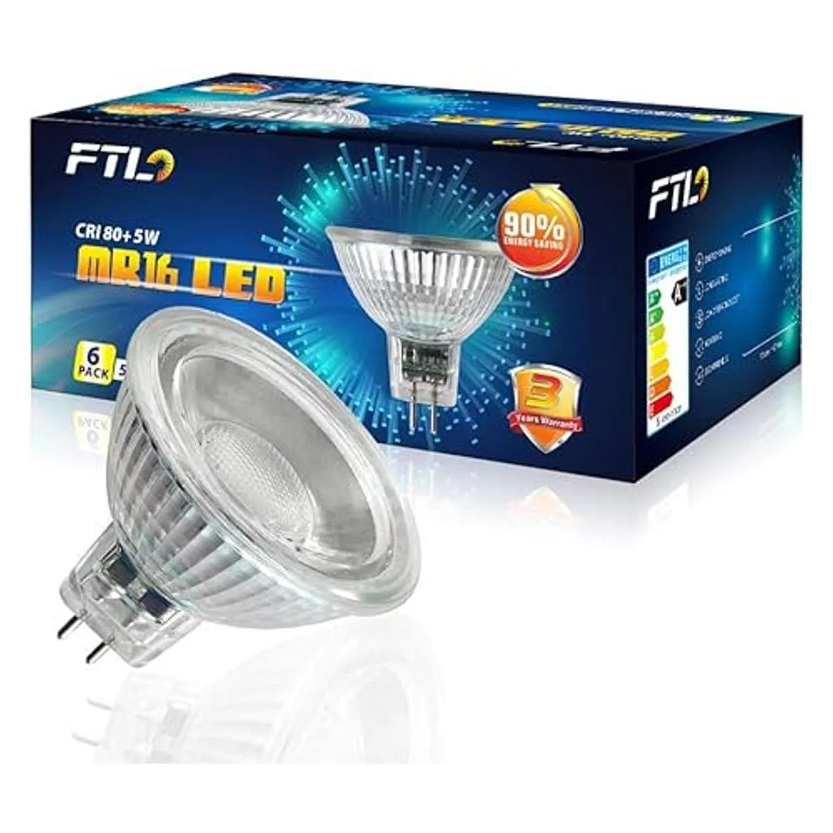 ENERGY SAVING: FTL 5W 12V MR16 LED Light Bulbs 3000k, suitable for led replacement for 12V 50w mr16 halogen bulb. 30,000hrs long lifespan, can save 90 on your electricity bill.