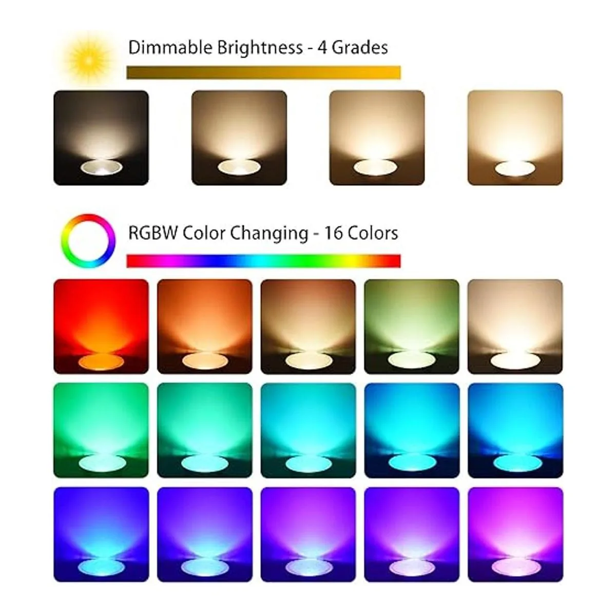 Cambio de color y control remoto: nuestras bombillas LED Par38 tienen 16 colores diferentes, 4 modos dinámicos flash/estroboscópico/desvanecimiento/suave para satisfacer tus necesidades en una variedad de escenarios diferentes, 5 niveles regulables y función de memoria. Simplemente haz clic en el botón para disfrutar de diferentes colores/modos de iluminación, muy fácil de operar. Muy adecuado para decoración de Halloween/Navidad.