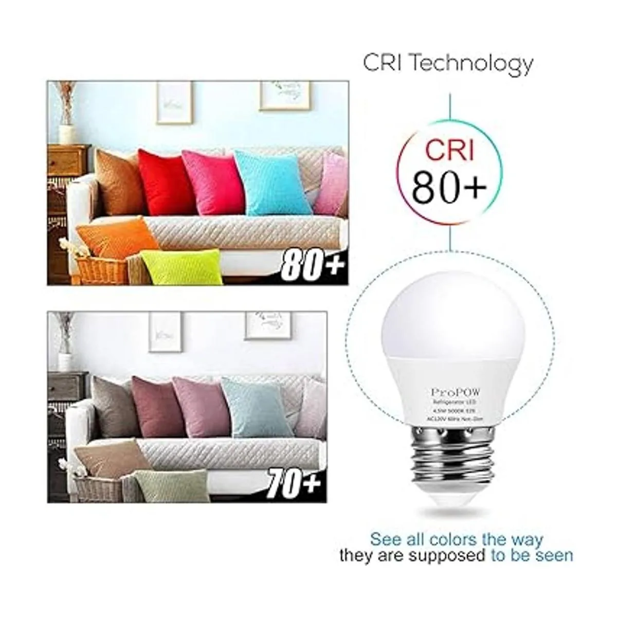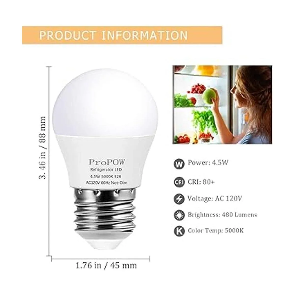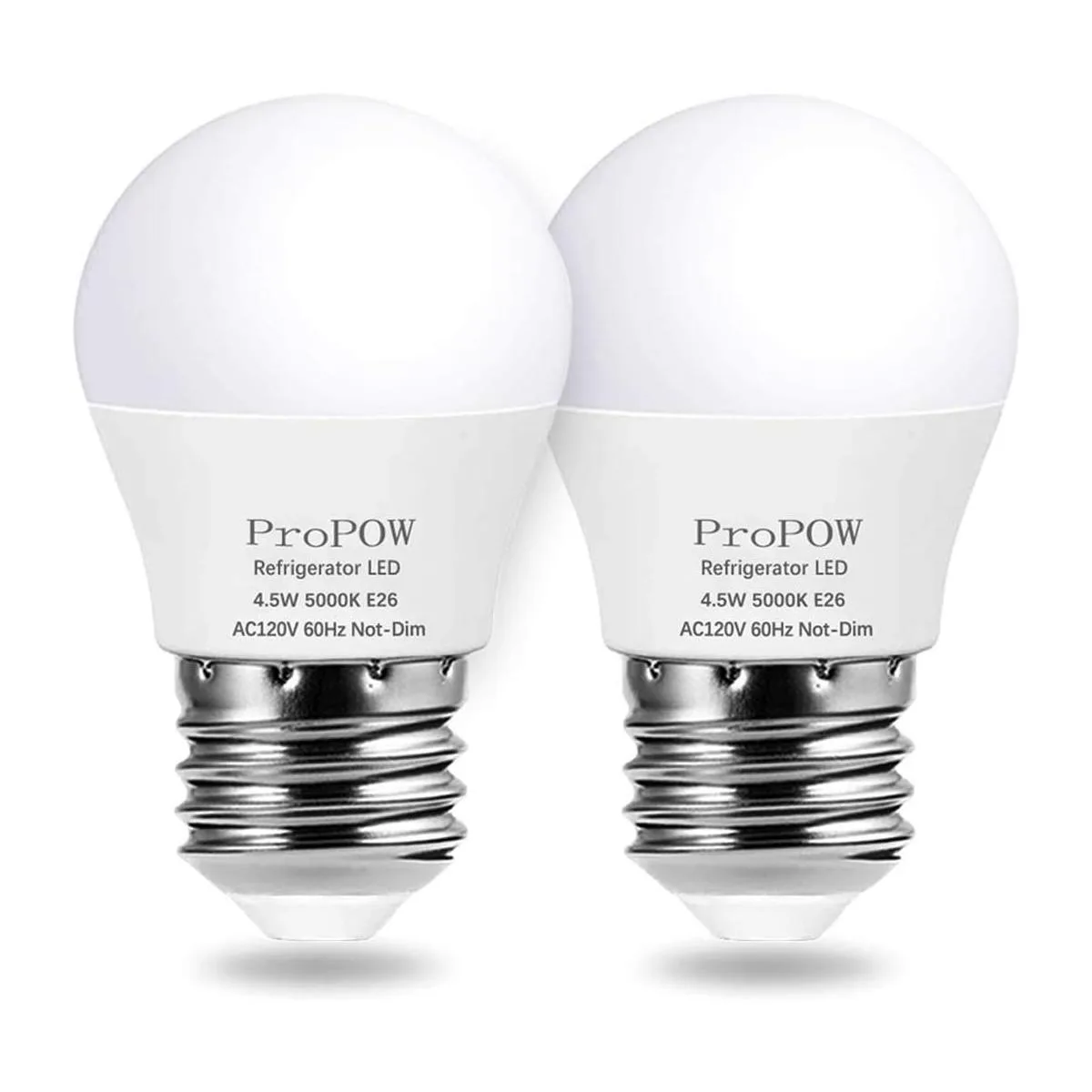 Bombilla LED para frigorífico equivalente a 40 W, 120 V, 4,5 W, luz blanca de día 5000 K E26 de base media, ahorro de energía A15, no regulable, impermeable, 2 unidades