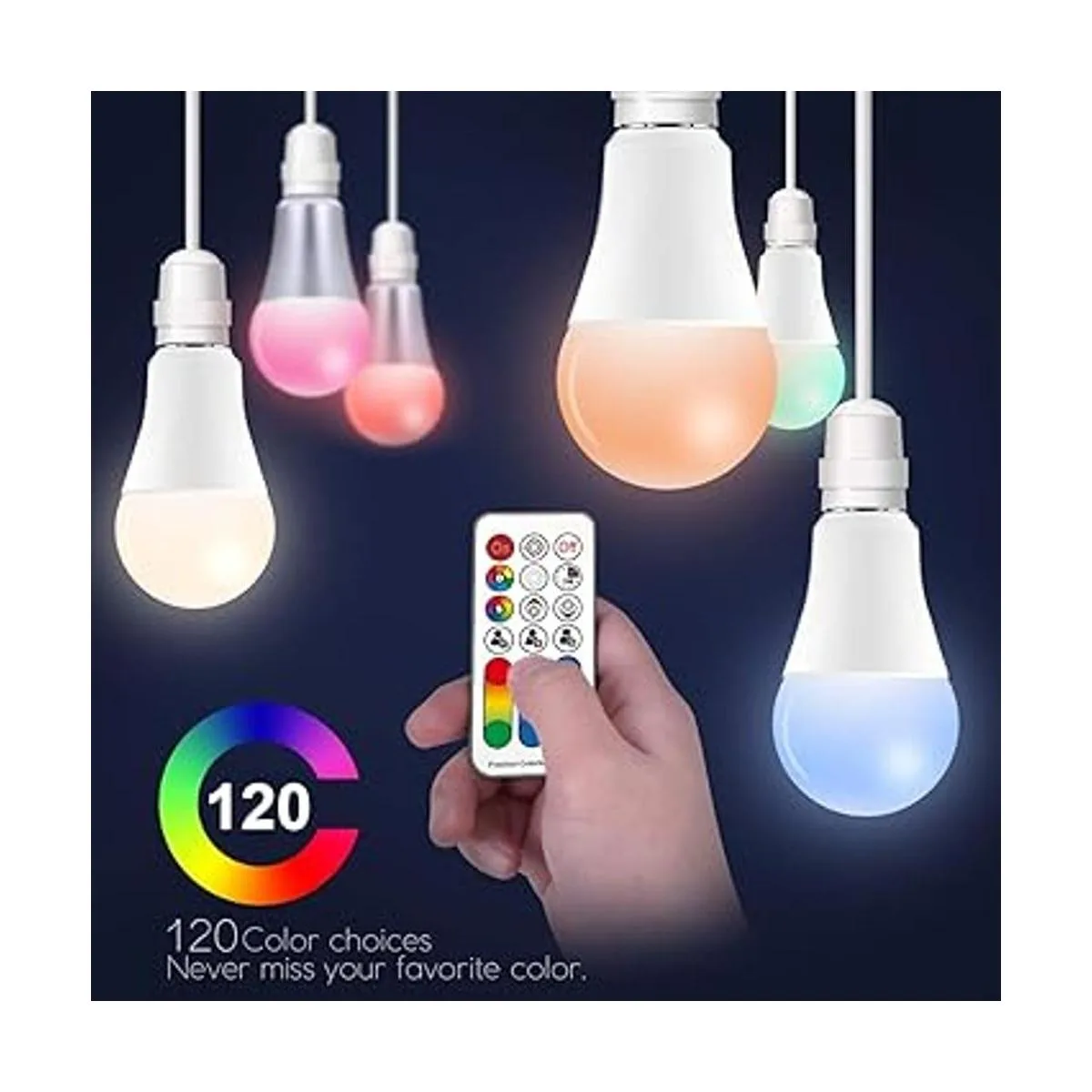 Bombilla LED que cambia de color, 120 colores, equivalente a 70 W, estroboscópica de bricolaje, blanco cálido de 2700 K RGB con control remoto, tornillo LED A19 E26 de 10 W paquete de 2