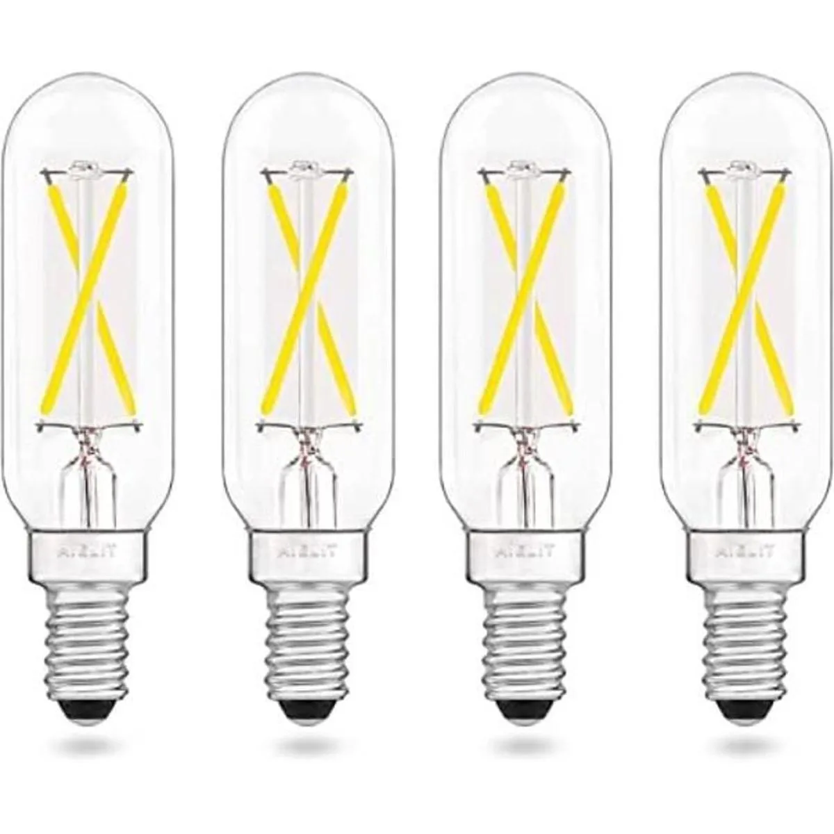Bombilla LED regulable T8 de 2 W, casquillo E12, casquillo pequeño, equivalente a 25 W, bombillas de filamento LED tubulares AIELIT para pasillo, porche, vestíbulo dormitorio, 200 lm, color blanco brillante 5000 K, 4 unidades