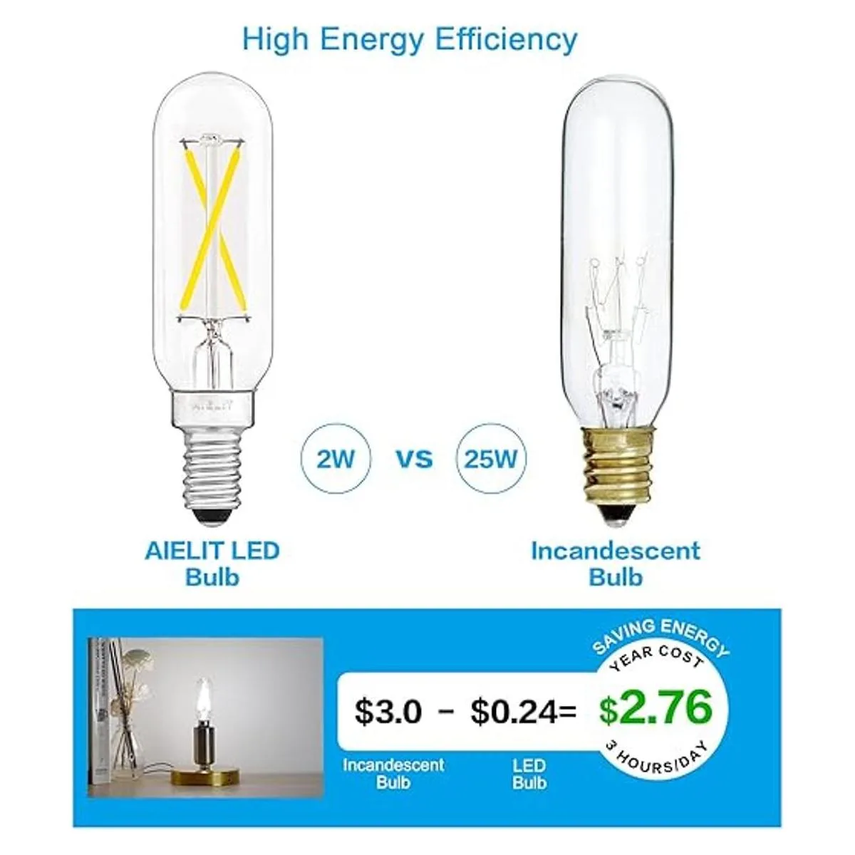 Ahorro de energía: 2 W equivalente a una bombilla incandescente de 25 W, ahorra más del 90 de energía, reduce drásticamente tu factura de electricidad costos anuales sólo 0.24 basado en 3 horas/día. Larga vida útil: la bombilla de filamento LED AIELIT T8 proporciona 25.000 horas de vida útil, resolviendo la molestia de reemplazar bombillas frecuentes