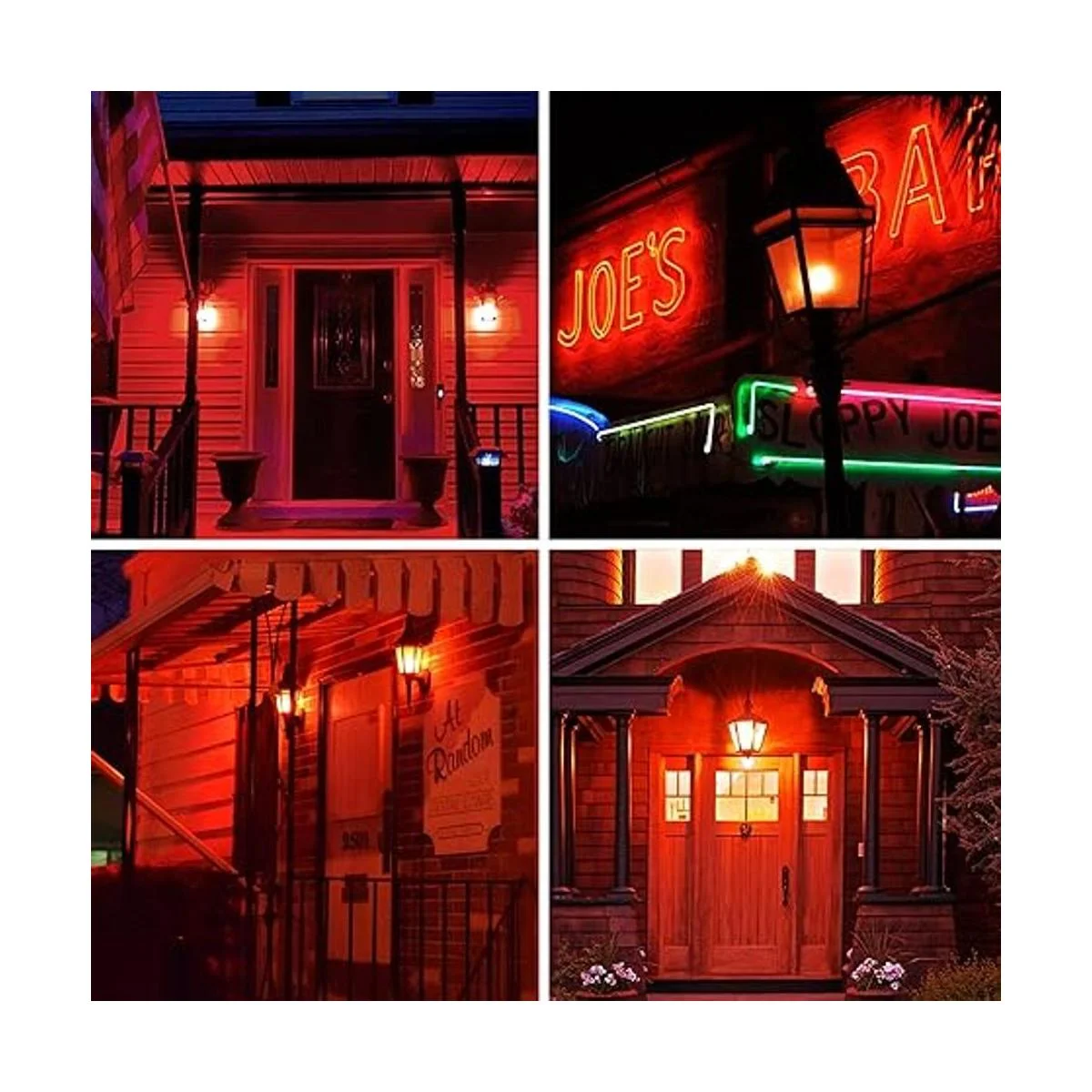 Amplia aplicación: luces LED rojas con base E26, esta bombilla LED en rojo puede combinar con la mayoría de soportes de lámpara de tu casa. La iluminación roja especial se puede utilizar para decoración de festivales, restaurantes, bares. También se puede utilizar para luz nocturna.