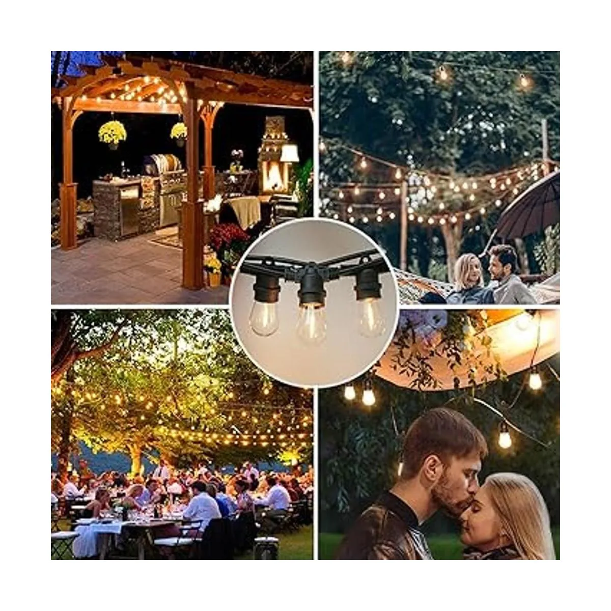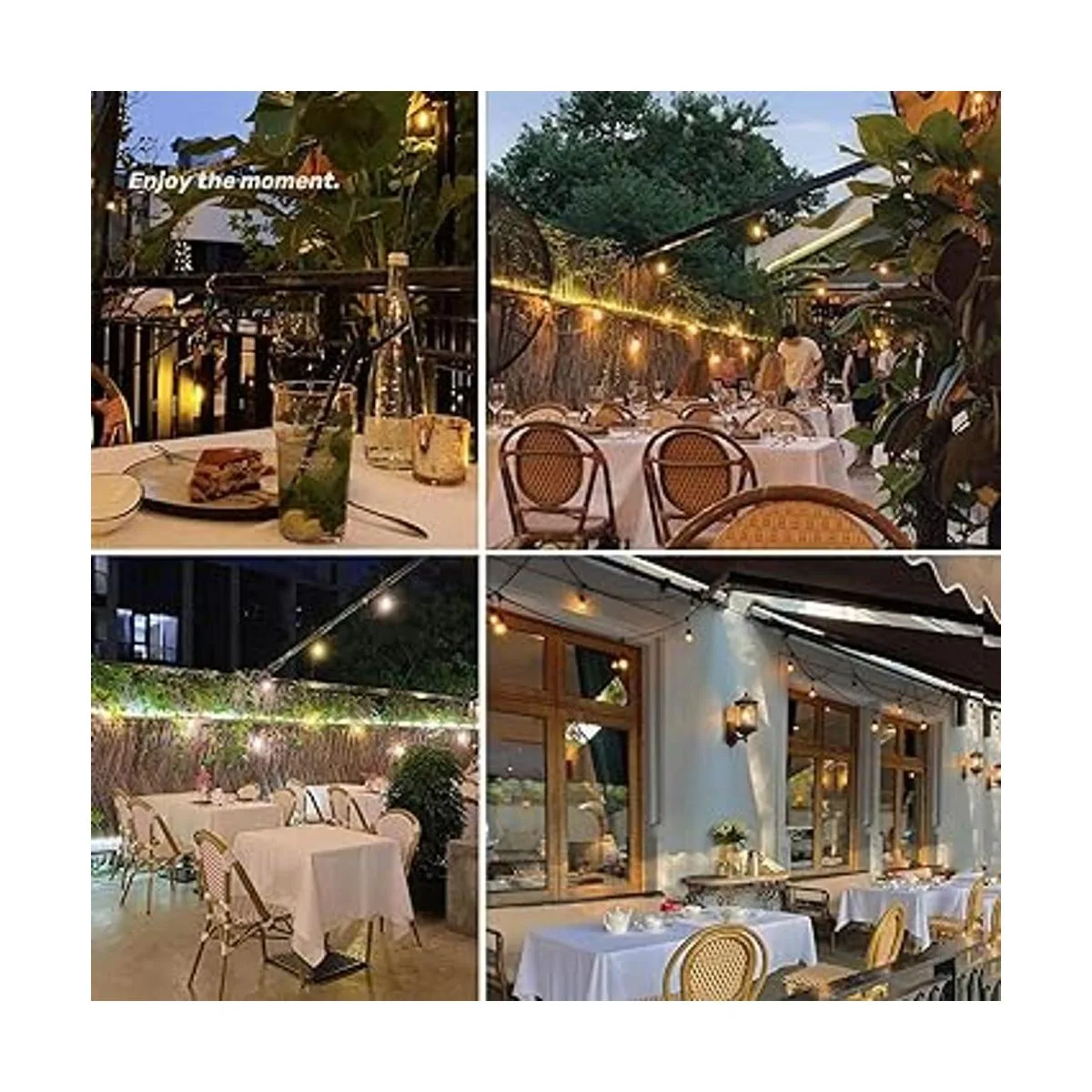Características del producto: este producto no funciona con pilas. Fuente de alimentación doméstica CA/120 V. La bombilla de cadena S14 está hecha de plástico transparente de alta calidad, con bajo calentamiento, sin manos calientes, sin mercurio, sin ultravioleta e infrarrojos, sin deslumbramiento y sin parpadeo. Diseñado para proporcionar brillos más bajos y tenues. La luz blanca cálida de 2200 K hace que los ojos se relajen, cómodos y relajados.
