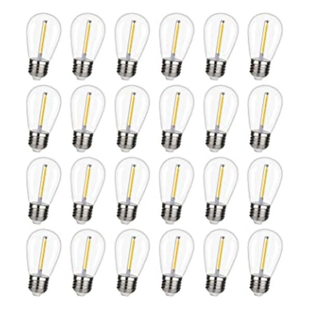 Bombilla LED S14 inastillable e impermeable, guirnalda de bombillas, equivalente a 1 W incandescente de 10 W, bombillas de filamento LED, blanco cálido de 2200 K, CA120 V, 70 lúmenes, base E26, paquete de 24 unidades