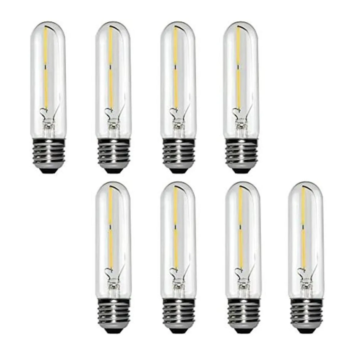 Bombilla LED T10 de 2 W regulable 4.92 pulgadas Edison Tubular, 2700 K blanco cálido equivalente a bombilla incandescente de 20 W, 200 LM E26 base T30 filamento bombilla para vitrina, 8 unidades