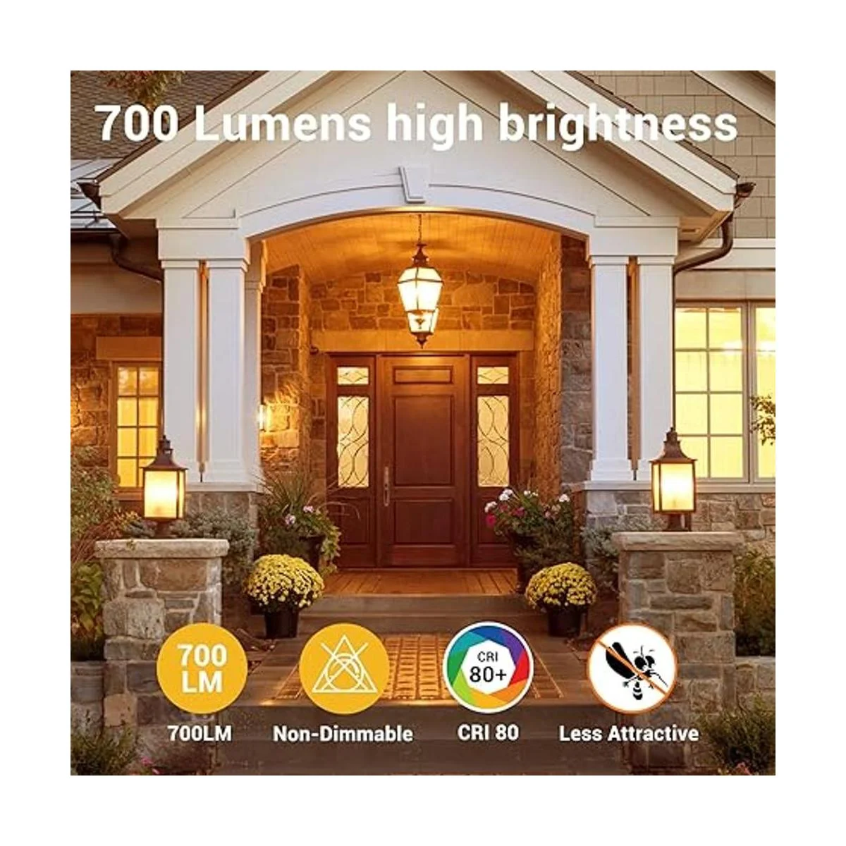 Bombilla nocturna amarilla ámbar de Halloween Con CRI80, brillo de 700 lm y ángulos de visión de 240 grados, las bombillas LED amarillas aportan una fuente de luz suave a tus ojos, también ofrecen suficiente luz para tu trabajo. Ideal para luces de porche de Halloween o decoración del hogar.