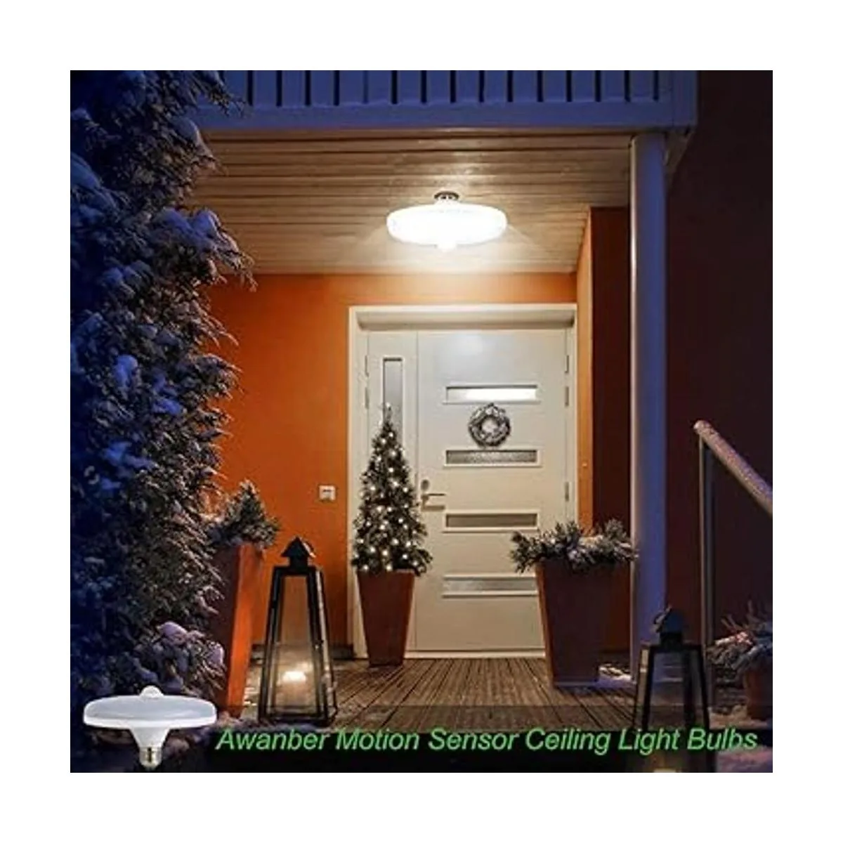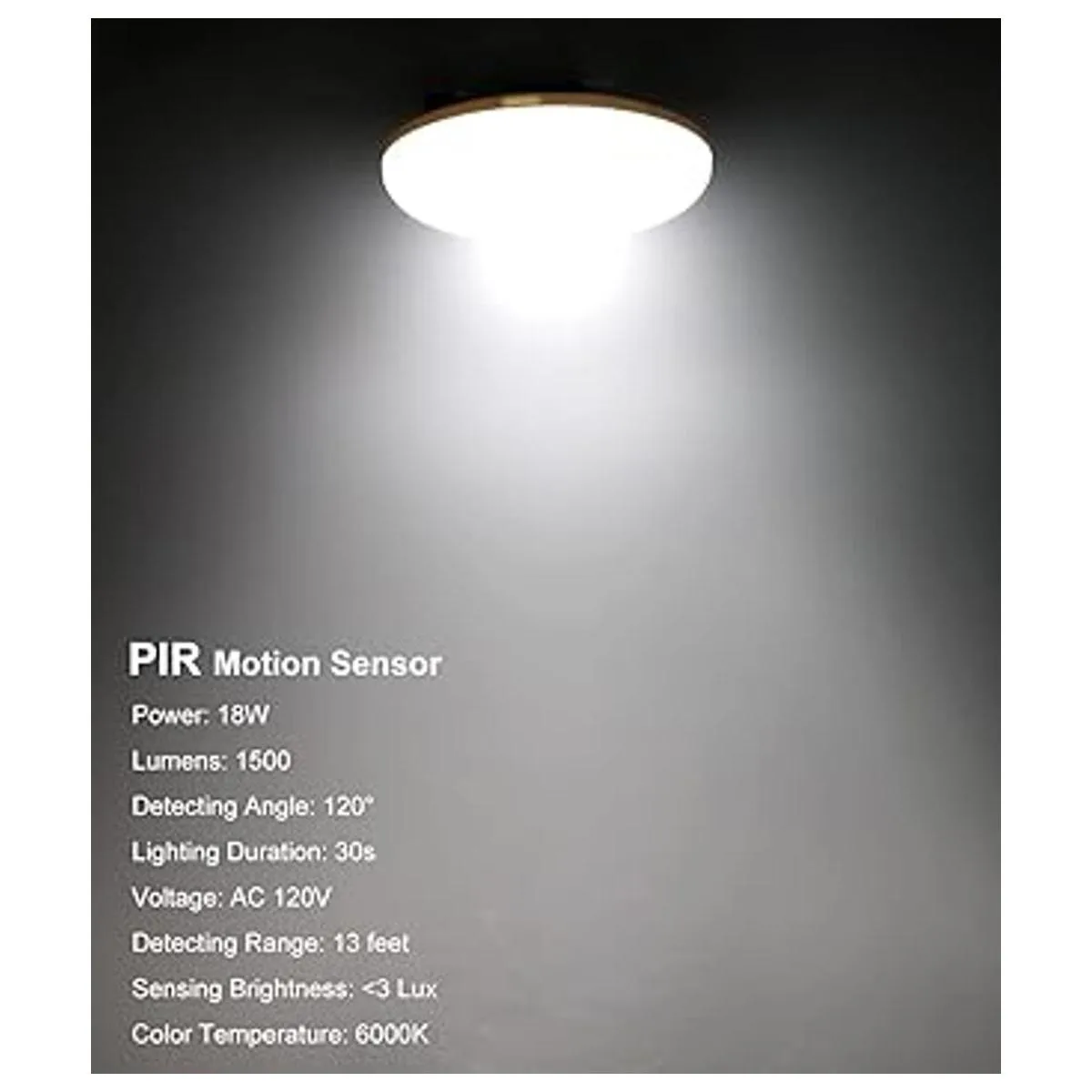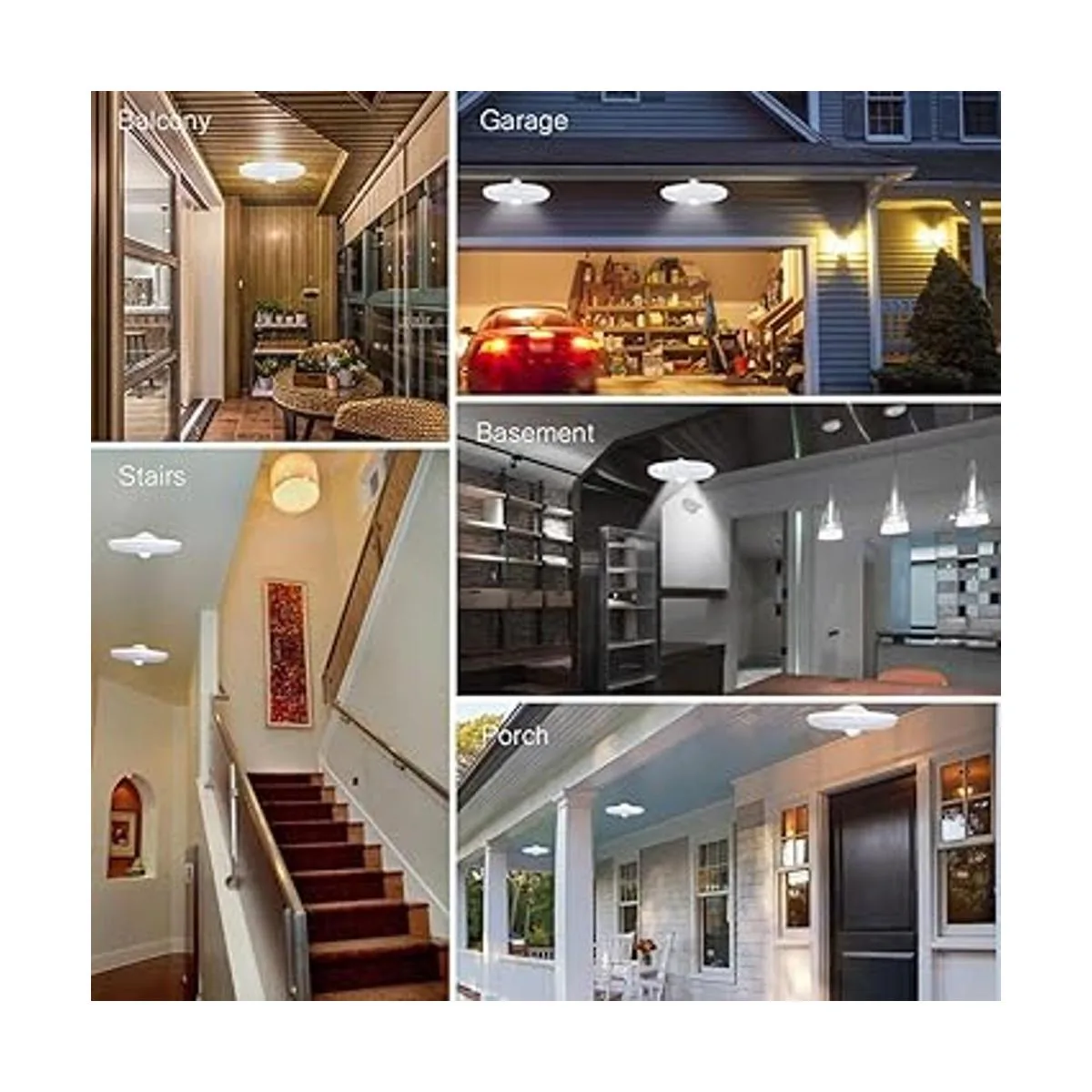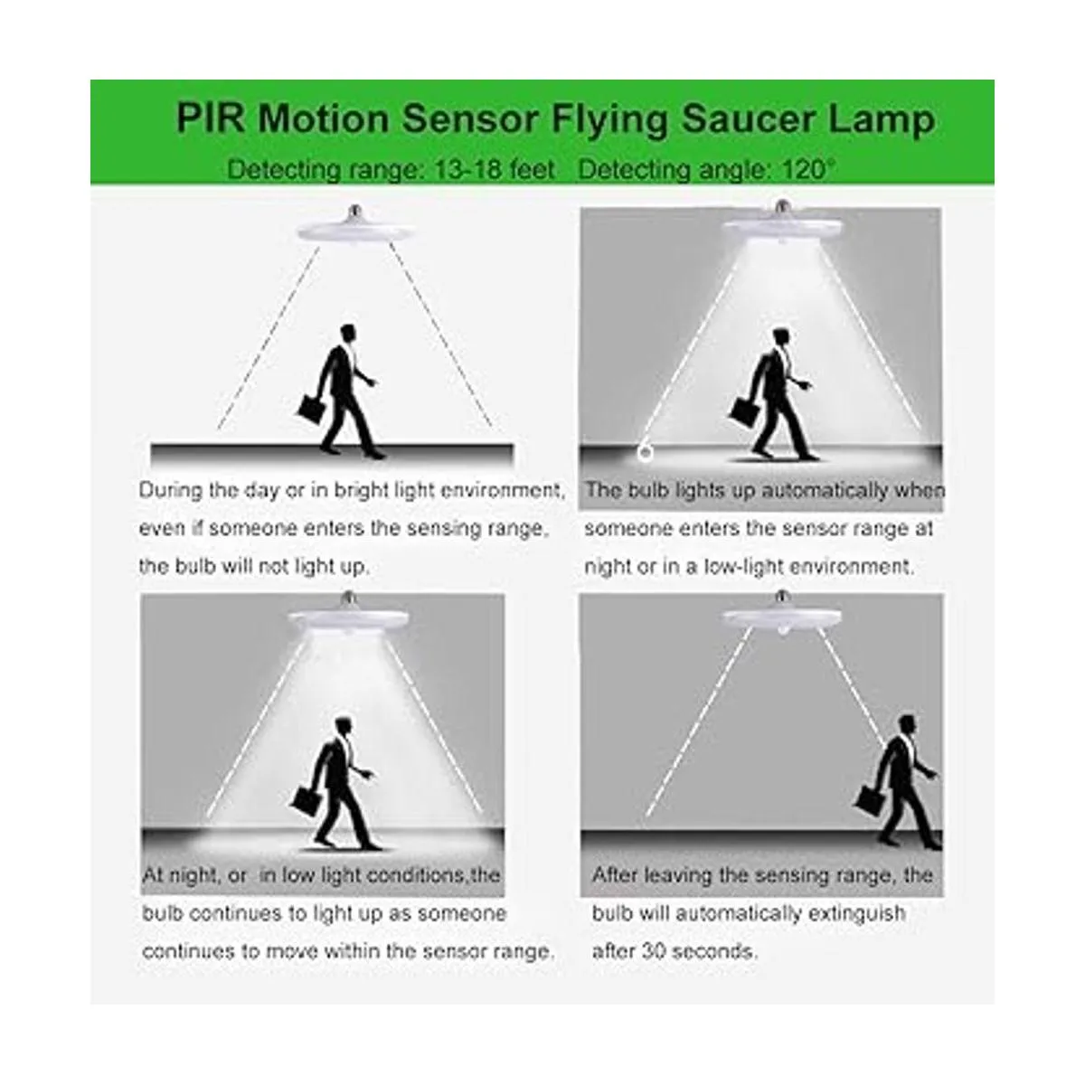 Sensor de movimiento PIR: con sensor de movimiento e interruptor automático, solo cuando la gente está cerca de la bombilla LED 1316 pies y el entorno es oscuro, el sensor de movimiento detectará a las personas y luego la bombilla de techo se encenderá. Después de 30 segundos, si no se detecta movimiento, la bombilla LED de movimiento se apagará. Por favor, presta atención a que: si el entorno es lo suficientemente brillante o durante el día, incluso el sensor de movimiento detectó a las personas, la luz del sensor de movimiento interior todavía se mantendrá apagada.