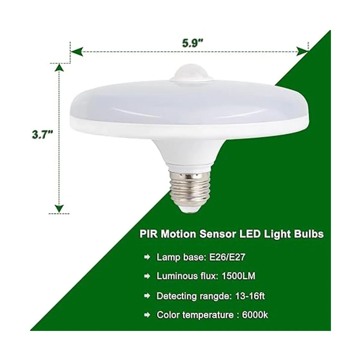 Bombillas con sensor de movimiento para interiores y exteriores, Bemexred E26 de 18 W equivalente a 150 vatios de 1500 lúmenes, luz de seguridad para armario, porche, garaje, lavandería, alto brillo, blanco frío