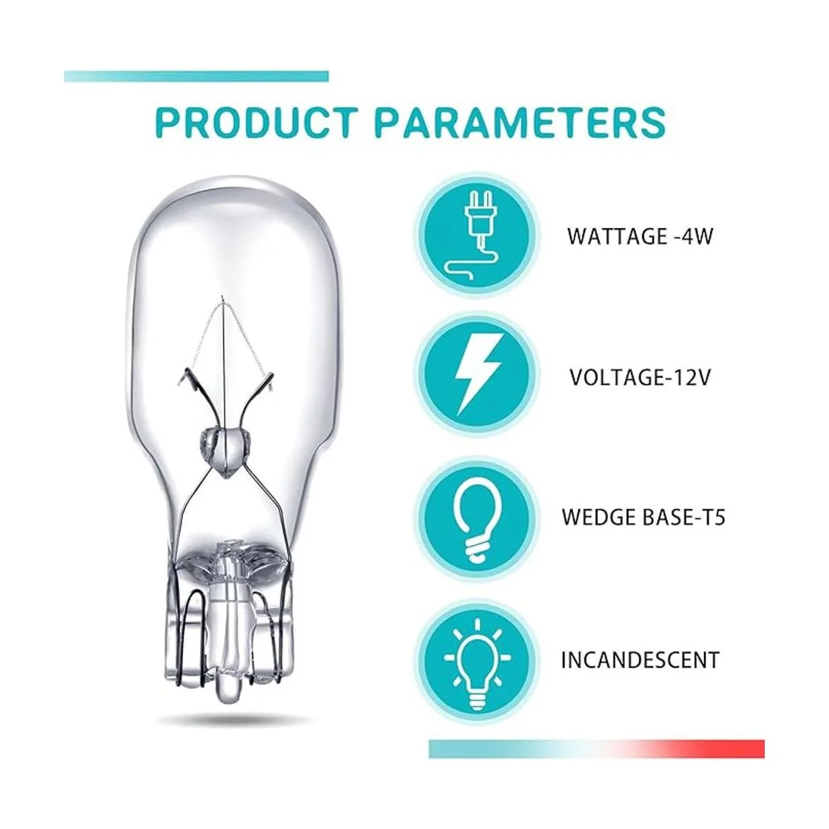 El paquete incluye: recibirás 10 bombillas transparentes T5 de base de cuña, cantidad suficiente para tu uso diario y reemplazo; asegúrate del tamaño antes de comprar en caso de una situación inadecuada