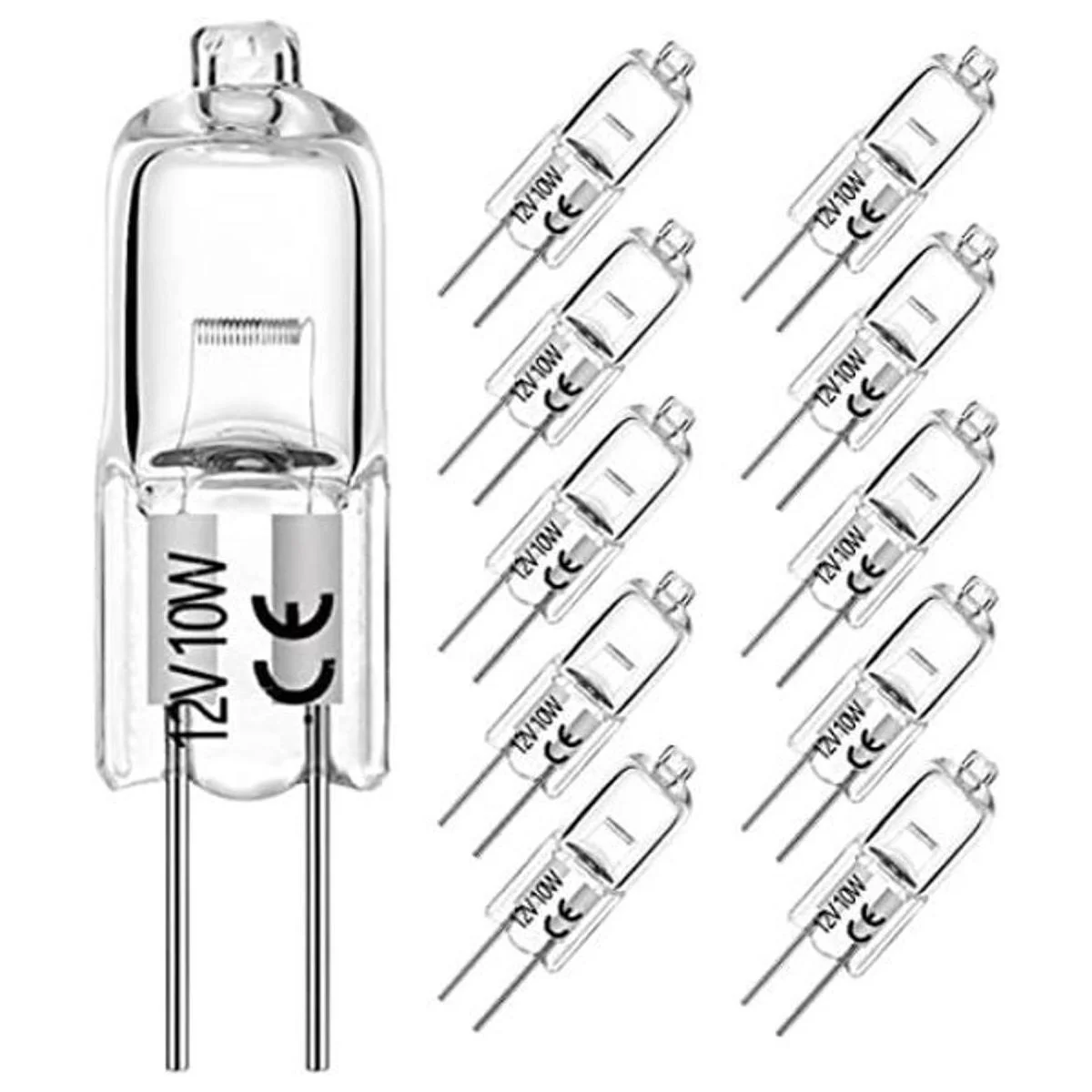 Bombillas halógenas G4 de 10 W 12 V T3 JC tipo 2 pines de repuesto para paisaje debajo del gabinete, iluminación de pista de luz regulable paquete de 10