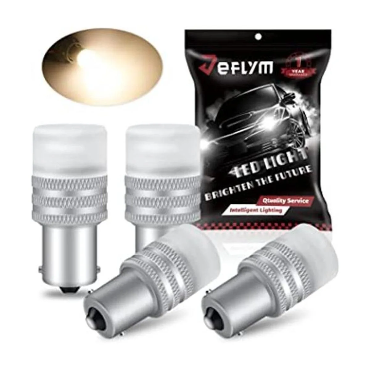 Bombillas LED 1156 de color blanco cálido, 1030 V CACC 1141 1003 1073 BA15S 7506 de repuesto para autocaravana cámper, luces traseras de freno invertido, súper brillantes de baja potencia para exteriores paquete de 4