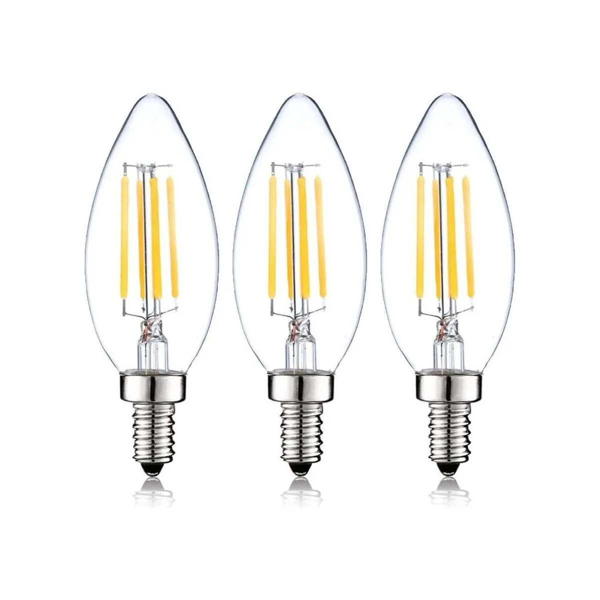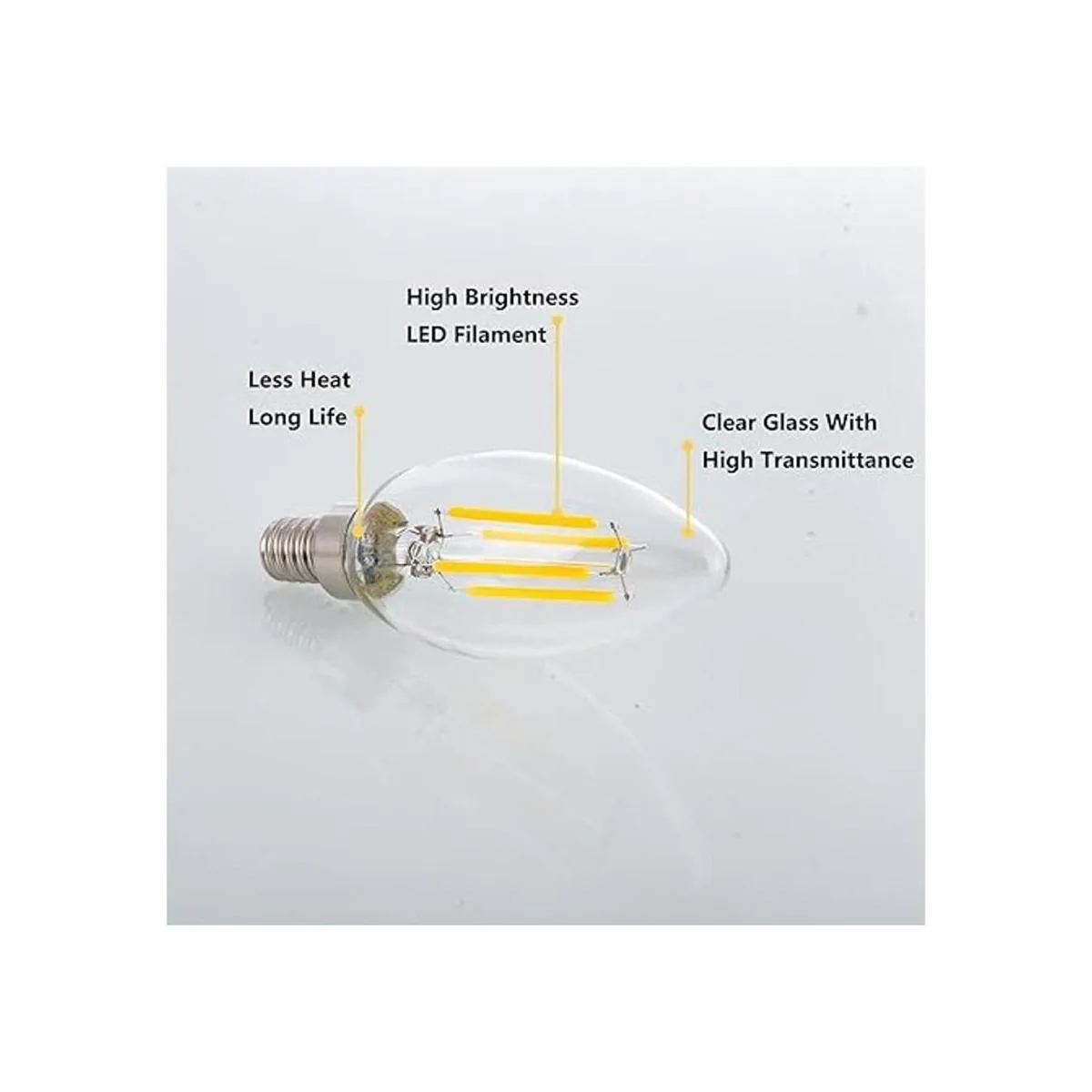 Diseño de filamento vintage: bombillas de candelabro de 12 V con chips LED de alta eficiencia y gran tamaño en filamento. Cristal ultrafino, cristal transparente con alta transmisión, sin mercurio.