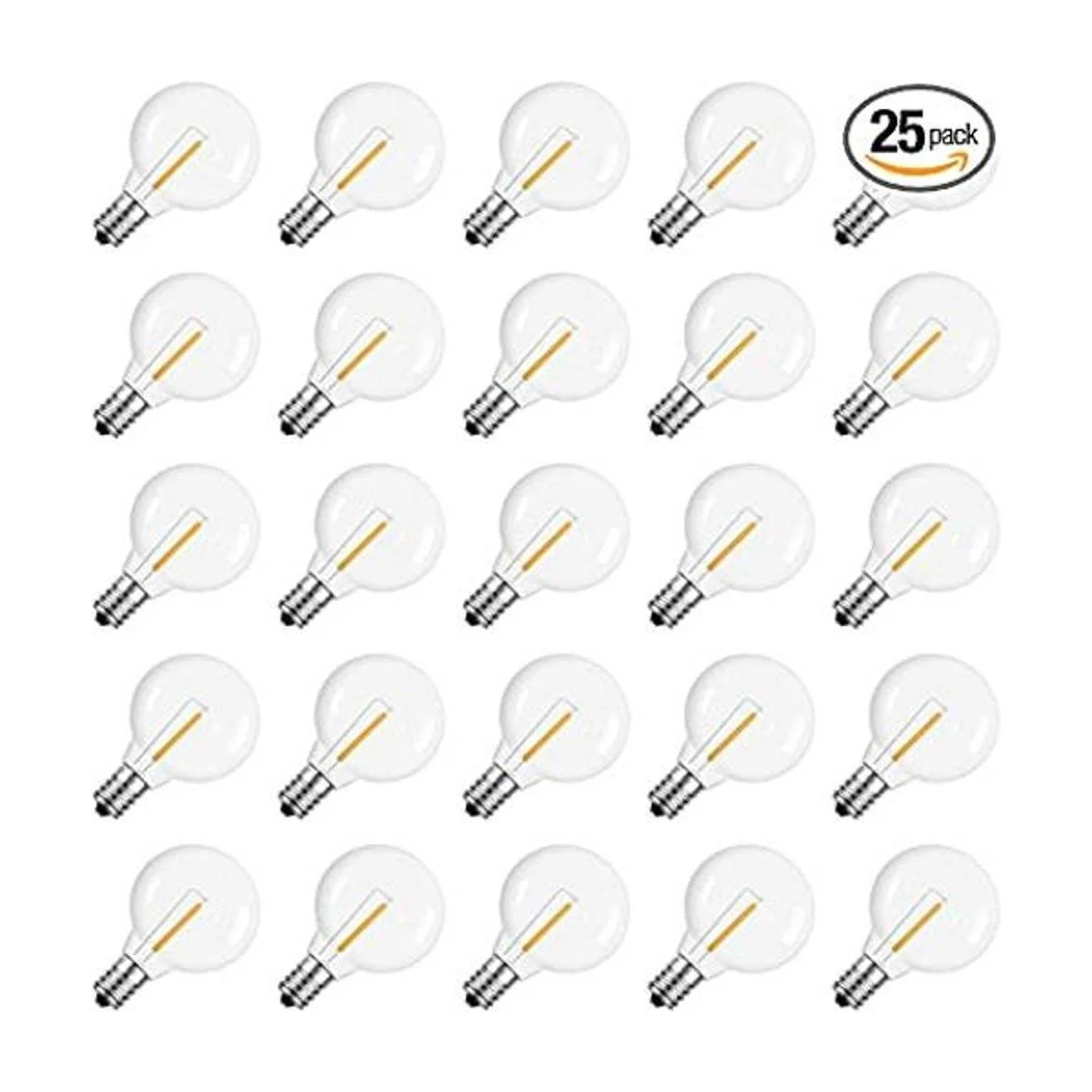 Bombillas LED de repuesto G40, base de rosca E12, bombillas LED inastillables para tira de luces para exteriores, 1 W equivalente a 5 W, blanco cálido, paquete de 25