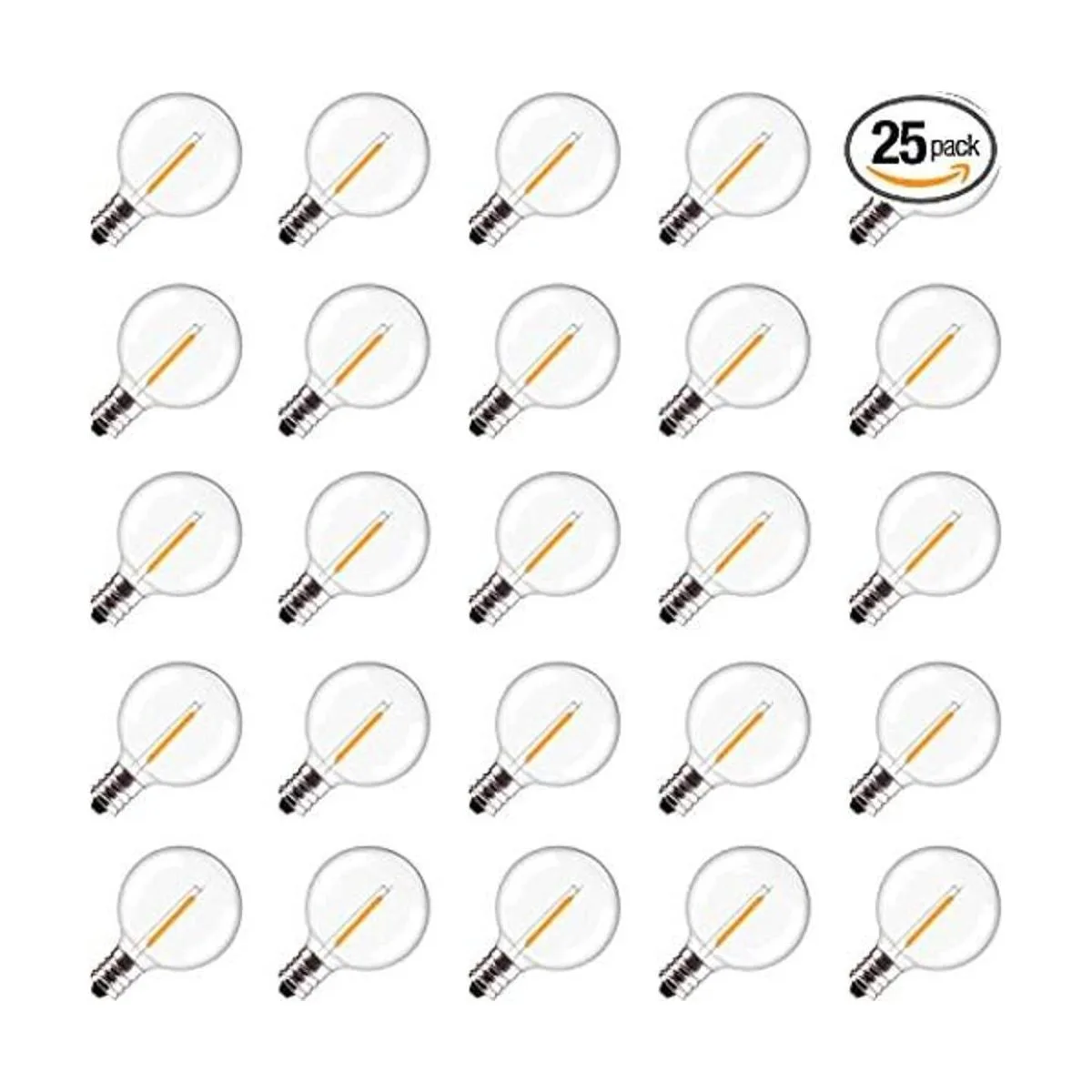 Paquete de 25 bombillas G40 de repuesto, las bombillas LED G40 tienen una base de tornillo de candelabro E12 que se adapta a enchufes C7 y E12. Bombillas LED Edison de 0,6 W por globo, 120 voltios, equivalente a bombillas incandescentes de 5 W.