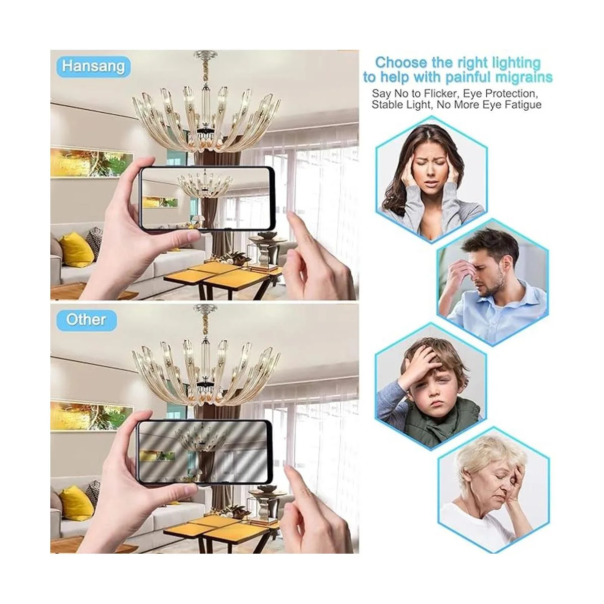 Bombillas de araña sin parpadeo Alguna vez has encontrado tensión ocular después de terminar un capítulo en tu novela favorita Estas bombillas LED de vela están equipadas con chip LED de alto brillo y un amplio diseño de distribución de luz, que puede evitar eficazmente molestias visuales innecesarias o fatiga ocular, proporcionar suficiente iluminación para el espacio y garantizar la comodidad de tus ojos.