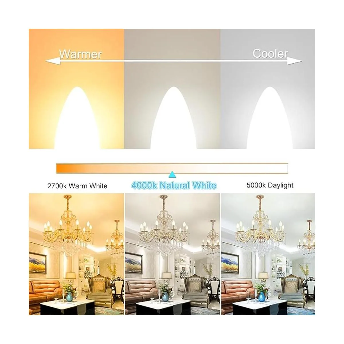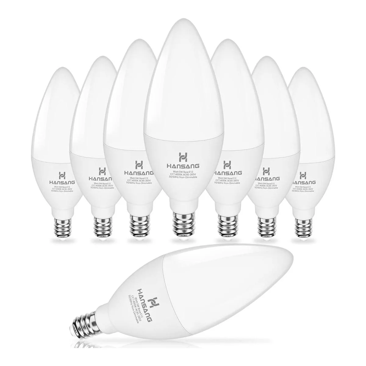 Bombillas LED E12, bombillas Hansang tipo B de 5 W equivalente a 60 W, bombillas LED de candelabro blanco natural de 4000 K, bombilla E12 de 500 lúmenes, bombilla de ventilador de techo B11 no regulable, paquete de 8