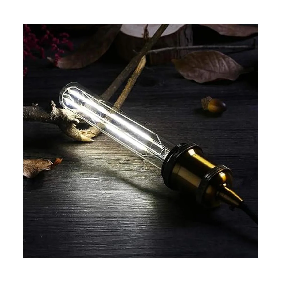 Técnica: bombilla tubular de filamento LED regulable, base E26, tamaño: longitud 7.3 pulgadas, ancho 1.20 pulgadas, CA 110 V130 V, con protección contra sobrecarga, protección contra cortocircuitos, ángulo de haz de 360 grados y menos calor.