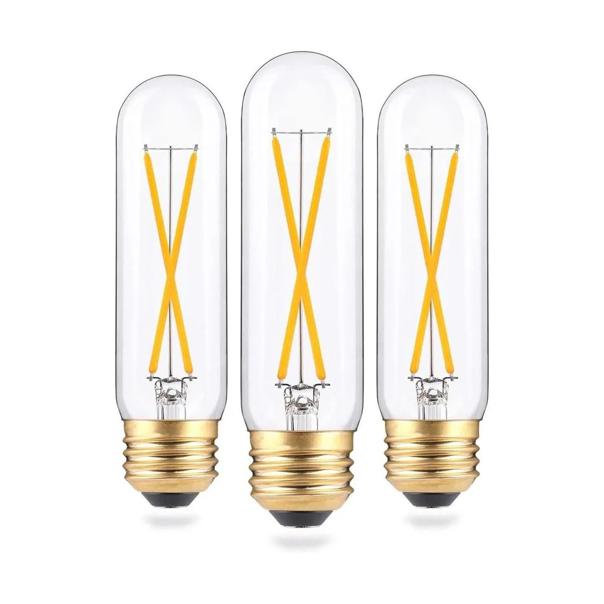 Bombillas LED tubulares regulables de 2 W, blanco cálido de 2700 K, bombilla de filamento estilo Edison, bombilla vintage T10 equivalente a 25 W, base media E26 200 lúmenes, cubierta de vidrio transparente, paquete de 3