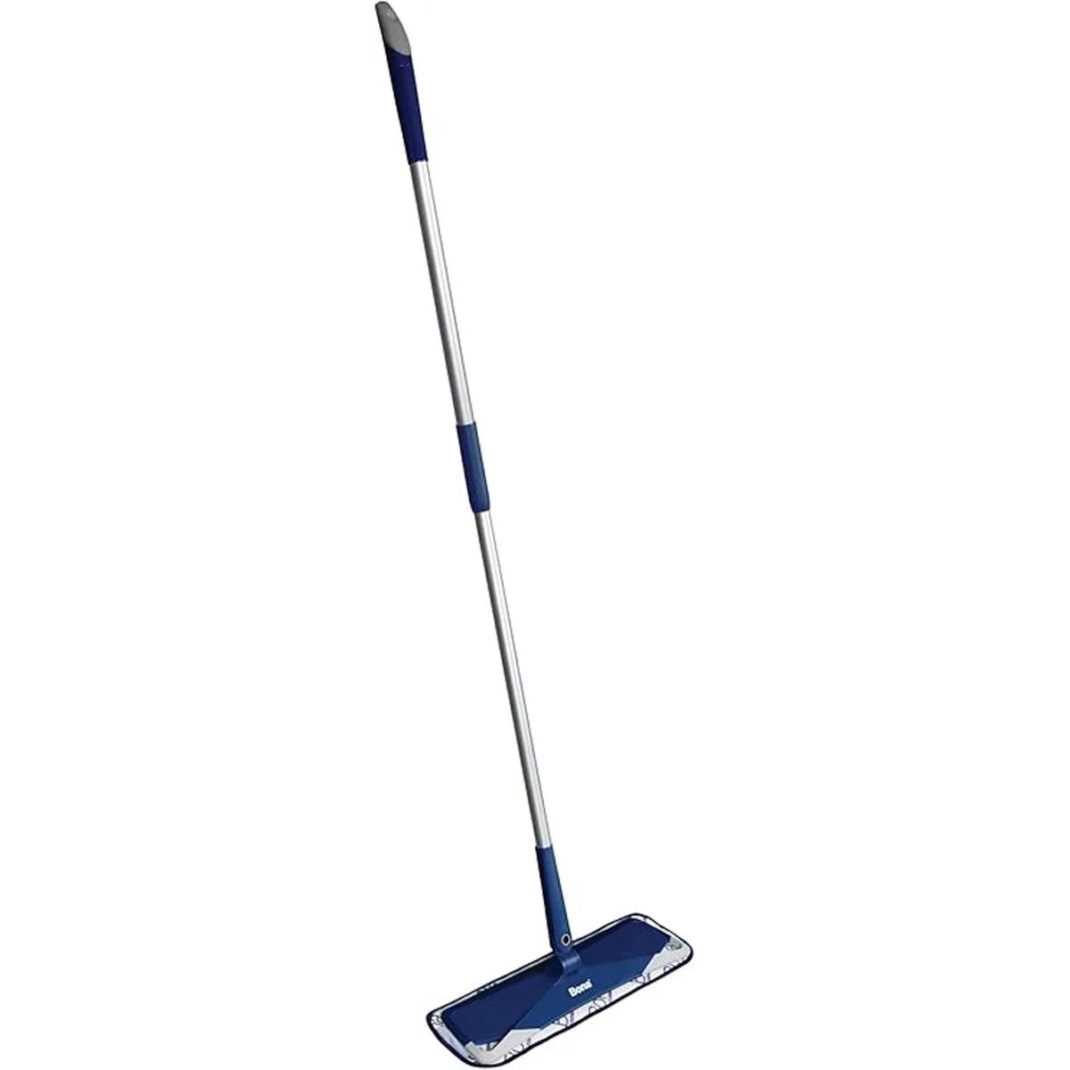 Viene con un mango telescópico de una sola pieza de 60 pulgadas, una base giratoria de 360 grados en el cabezal, una almohadilla de limpieza de 4 x 15 pulgadas que se fija a la base con velcro y una almohadilla de microfibra para quitar el polvo.