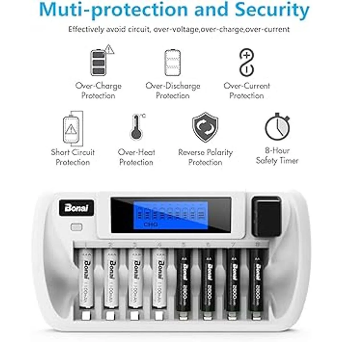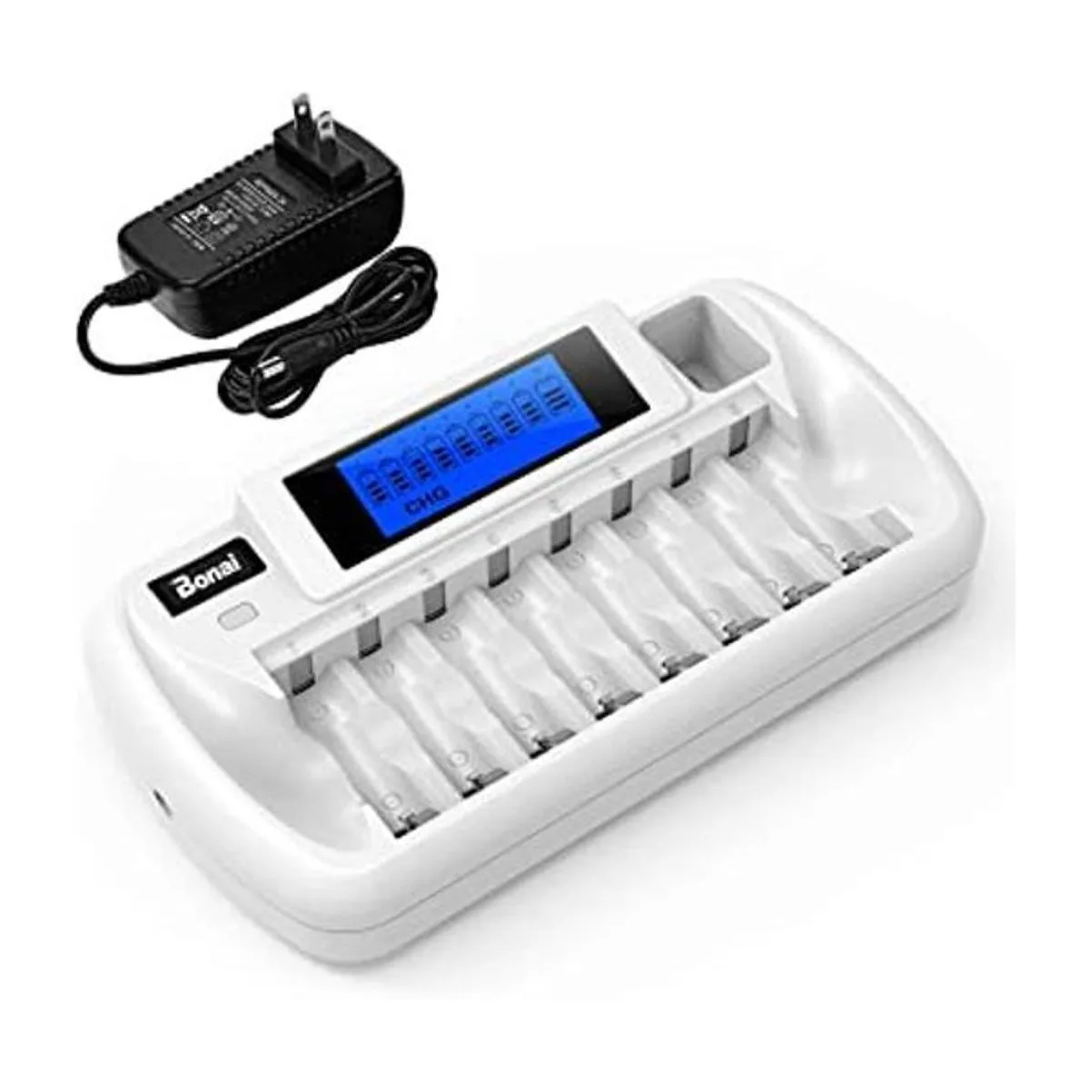 BONAI 81 Bay AA Battery Charger with LCD Display for Rechargeable AAAAA NiMHNiCd 9V Rechargeable Batteries