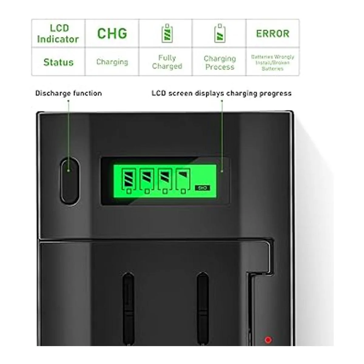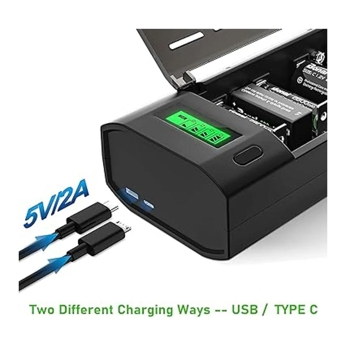 BONAI Cargador de batería inteligente para pilas recargables AA AAA C D 9V NiMH NiCD con función de descarga y pantalla LCD, color negro